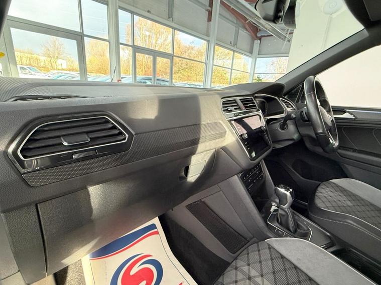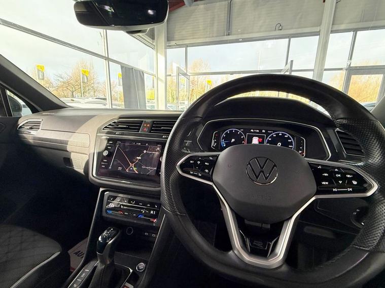 This 2021 Volkswagen Tiguan TSI R-Line boasts a clear vehicle history and has had only one owner from new. This Euro 6 compliant model features a responsive 1.5 litre petrol engine and comes with the desirable R-Line trim. Youll appreciate the comfort and convenience offered by the Winter Pack, which includes heated seats and a heated steering wheel, alongside the three zone electronic climate control for personalised cabin temperatures. The R-Line specification also includes a heated leather trimmed multifunction steering wheel and gear knob, plus advanced LED Plus self levelling dipped and main beam headlights. Experience effortless journeys with the Adaptive Cruise Control, which also incorporates predictive cruise control, helping you maintain a set speed and distance from the vehicle ahead. The Tiguans performance is further highlighted by its brisk 0-60mph acceleration in just 9.2 seconds, demonstrating its capability. These features collectively indicate a superior driving experience compared to other vehicles in its class, offering a blend of comfort, technology, and dynamic performance.