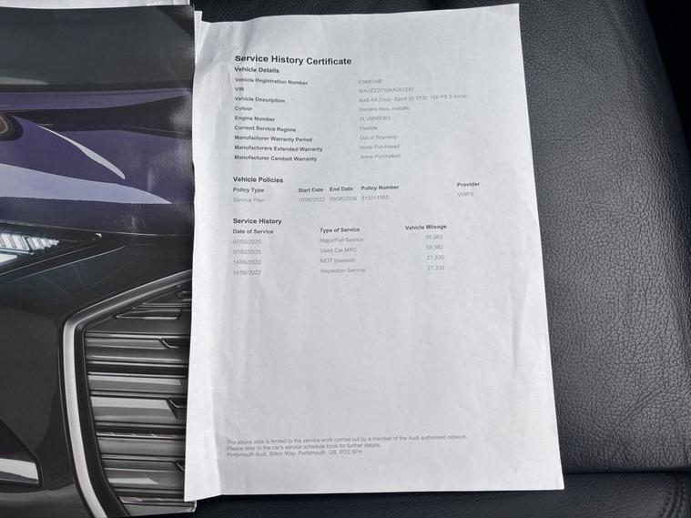 This Audi A5 TFSI Sport from 2019 boasts a clear vehicle history check and has had only two owners, offering you peace of mind. This stylish saloon features a 2.0 litre petrol engine and meets Euro 6 emission standards. Inside, youll find comfort with heated front seats and deluxe 3 zone electronic climate control, while the Xenon headlights with LED daytime running lights ensure excellent visibility. The light and rain sensor automatically adjusts the headlights, and the Bluetooth interface allows for seamless connectivity. This particular A5 TFSI Sport stands out with its impressive 40 mpg fuel economy, indicating it is more economical than many similar vehicles. Its low CO2 emissions and low insurance group also contribute to lower running costs, making it a sensible choice. This well maintained vehicle is ready for its next owner to enjoy.