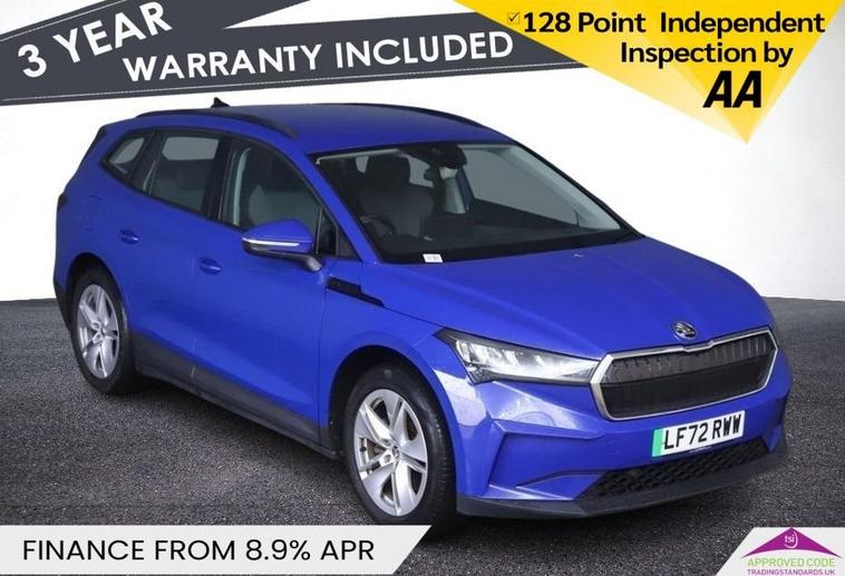This 2022 Skoda Enyaq 60 is a superb example, having had only one owner since new and boasting a long MOT, offering peace of mind for years to come. As a fully electric vehicle, it features a 62 kWh battery with a maximum range of 246 miles when new. Charging is convenient, taking approximately 9 hours and 30 minutes at home using a 7kW charger, while rapid public charging can take you from empty to 80% in just 37 minutes. This Enyaq 60 comes equipped with useful features including Skoda Connect iV Remote Services for climate control, dual zone climate control, a rear view camera, and front and rear parking sensors to aid manoeuvring. Basic LED headlights with daytime running lights ensure good visibility. The generous boot space in this Skoda Enyaq is a standout feature, providing ample room for all your luggage or shopping needs, making it a practical choice for families and individuals alike. The electric powertrain offers a smooth and quiet driving experience, and the advanced features like the rear camera and parking sensors demonstrate a commitment to driver convenience and safety, setting it apart from other vehicles in its class.