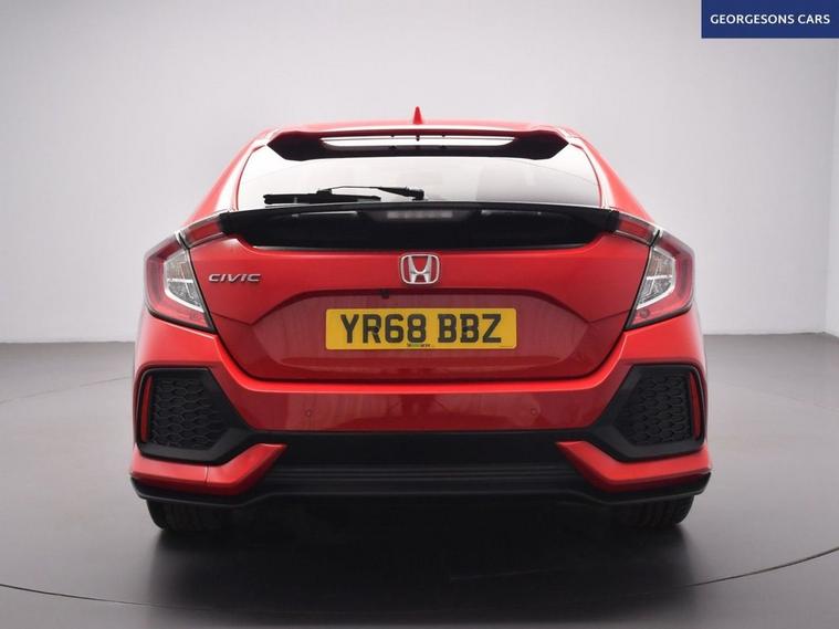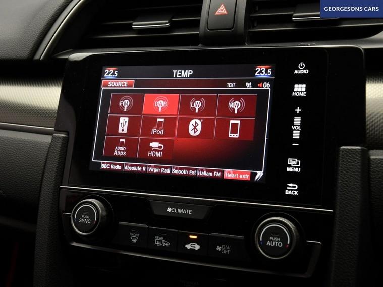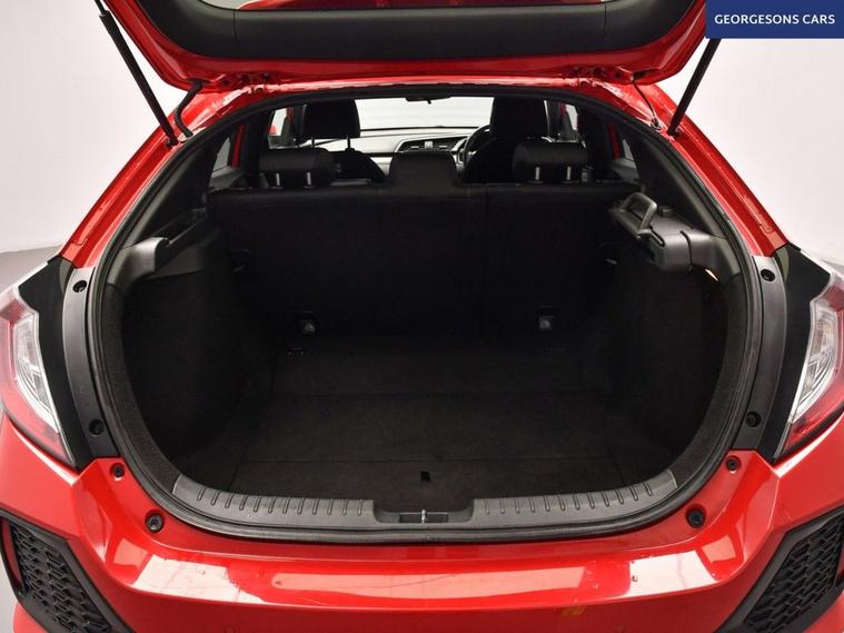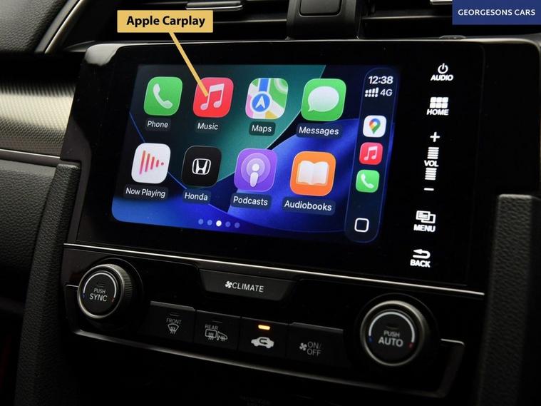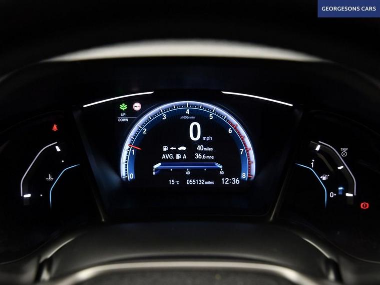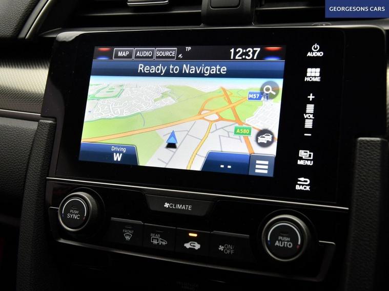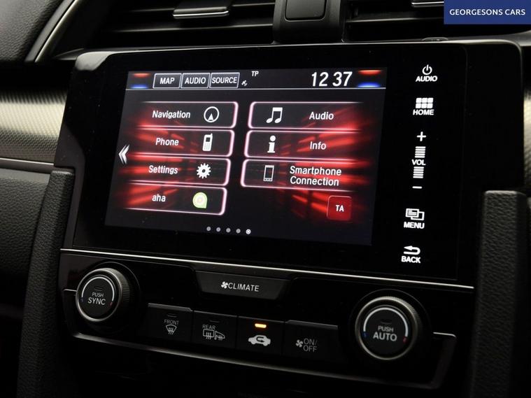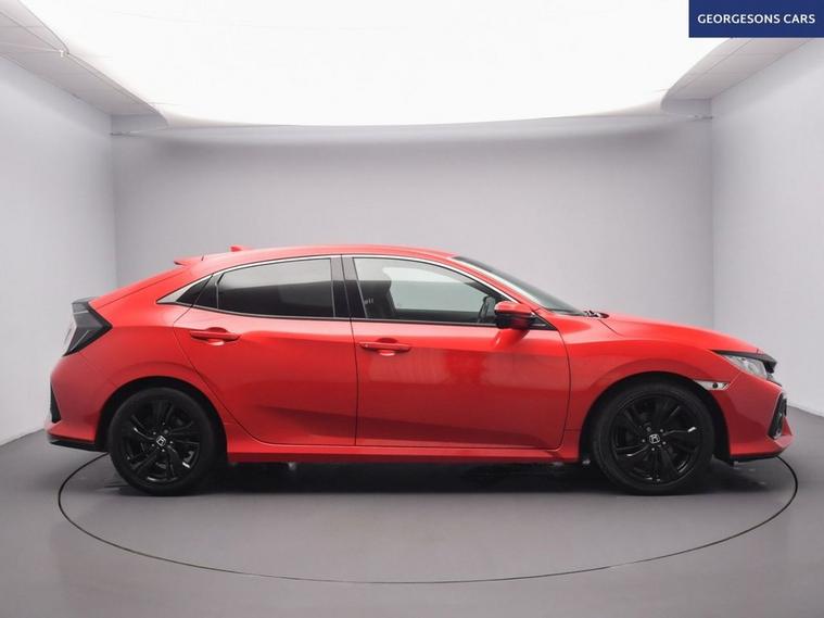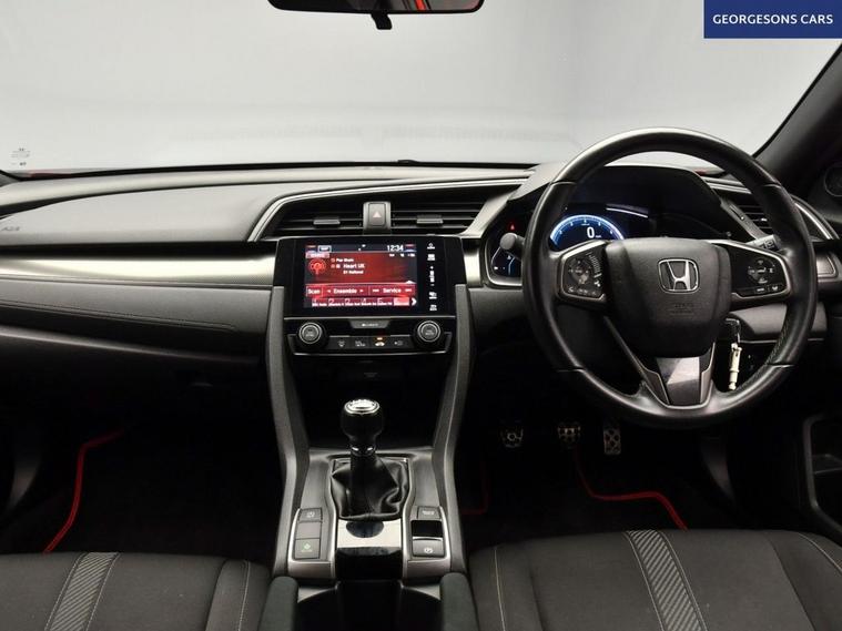 The Honda Civic 1.0 VTEC Turbo SR combines a responsive 1.0-litre turbo petrol engine with 126hp, delivering 0-62mph in 10.8 seconds and up to 58.9mpg in this front-wheel-drive setup with a precise 6-speed manual transmission. The SR trim brings sporty style with 17-inch alloys, black exterior accents and a premium interior. Navigate effortlessly with integrated satellite navigation, Apple CarPlay, Bluetooth and DAB radio. Parking is a breeze thanks to the reverse camera and parking sensors. Stay comfortable with dual-zone climate control. Adaptive cruise control with speed limiter and blind spot assist enhance safety and relaxation on every journey. The practical five-door hatchback includes a 478-litre boot.