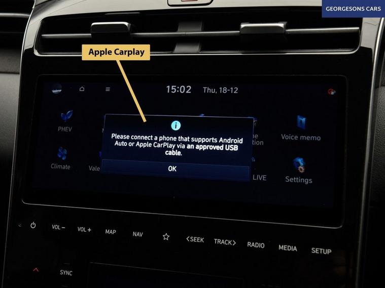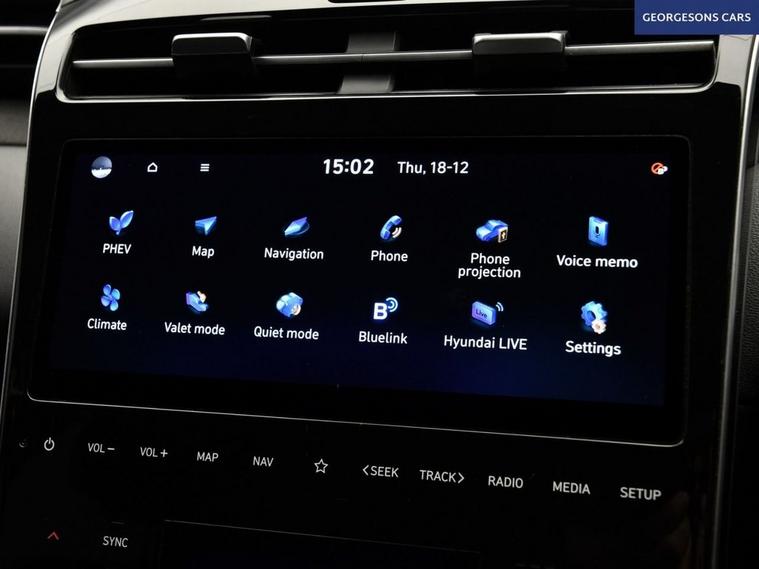 The Hyundai Tucson 1.6 T-GDi Plug-in Hybrid Premium combines a 1.6-litre turbo petrol engine with an electric motor for a total 265hp, delivering 0-62mph in 8.6 seconds, up to 38 miles pure-electric range and an official 201mpg in this all-wheel-drive setup with a smooth 6-speed automatic. The Premium trim offers excellent luxury with a high-grade interior. With one owner and six services, this Tucson is in superb condition. Navigate effortlessly with integrated satellite navigation, Apple CarPlay, Bluetooth and DAB radio. Parking is a breeze thanks to the reverse camera and parking sensors. Stay comfortable with dual-zone climate control and heated front seats. Hill assist ensures smooth starts on inclines. The spacious five-door SUV includes a 620-litre boot for practicality. Contact us today to test drive this one-owner, fully-equipped plug-in hybrid T