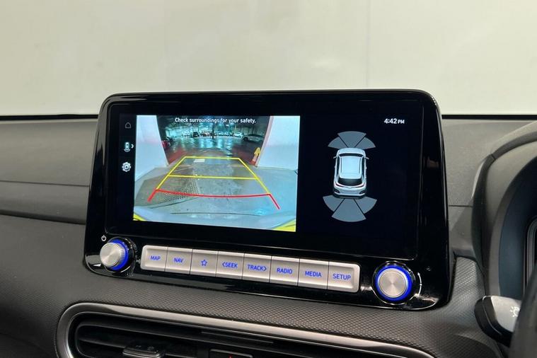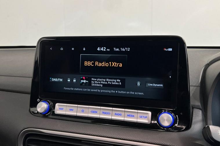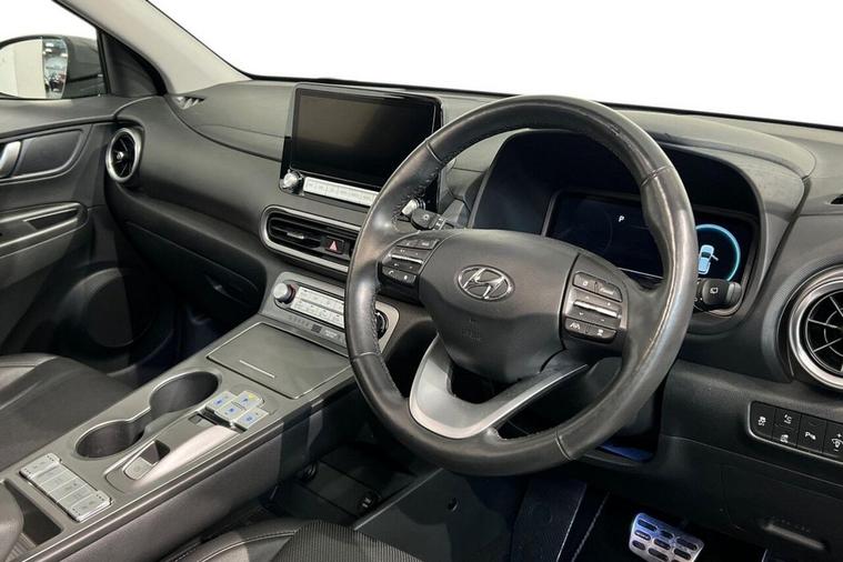 This 2022 Hyundai KONA Ultimate Electric boasts exceptionally low mileage for its age, having covered just 17, 100 miles, and comes with a clear vehicle history check. As an Ultimate trim, this electric KONA offers a substantial battery capacity of 68 kWh, providing a maximum range of 300 miles when new. Enjoy the convenience of a heated steering wheel, a head up display for easy viewing of key information, and seamless phone connectivity with Android Auto. The smart adaptive cruise control with stop and go function makes journeys more relaxed, while the wireless phone charging pad keeps your devices powered up without cables. The impressive 300 mile range from new highlights how this KONA Electric is better equipped for longer journeys compared to many other electric vehicles. Charging is also efficient, with a full charge at home using a 7kW charger taking approximately 10 hours and 16 minutes, and a rapid charge from empty to 80% achievable in just 53 minutes at a public charging station. This combination of extensive range, convenient charging options, and a wealth of premium features makes this Hyundai KONA Ultimate a compelling choice for electric motoring.