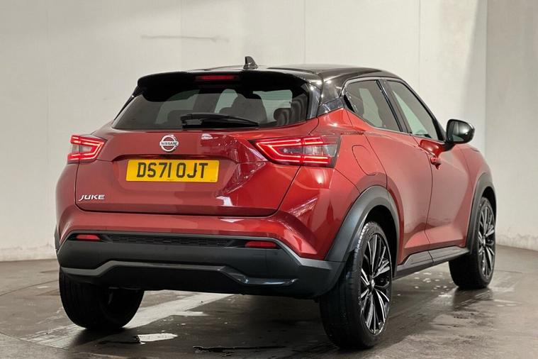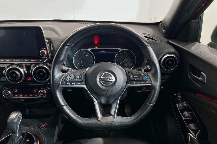 This 2022 Nissan Juke DIG T Tekna+ is a superb example, having had only one owner since new. This stylish crossover boasts a responsive 1.0 litre petrol engine, meeting Euro 6 emissions standards. Its Tekna+ trim level ensures a premium experience, enhanced by features like USB and AUX socket inputs, and seamless Bluetooth connectivity for your music and calls. The Intelligent Key with Start Push Button offers keyless entry and ignition, while the Comfort Pack includes climate control for a pleasant cabin environment. For ultimate convenience and connectivity, it supports both Android Auto and Apple CarPlay. The Jukes ProPilot Pack adds significant driver assistance, featuring Blind Spot Assistance (BLIS), Adaptive Cruise Control, and a 360 degree camera for effortless parking. With an impressive fuel economy of 46 mpg, this Juke offers excellent running costs. Its low CO2 emissions also highlight its efficiency compared to similar vehicles. This combination of advanced technology, comfort, and economical performance makes this Nissan Juke a compelling choice.