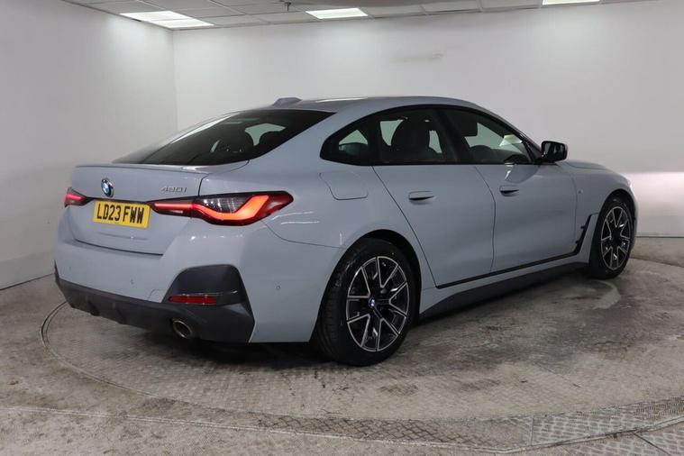 This 2023 BMW 4 Series Gran Coupe 420i M Sport is a superb example, having had only one owner since new. This stylish five door coupe combines a powerful 2.0 litre petrol engine with the sporty M Sport trim, all meeting the Euro 6 emission standards. Inside, you'll find the advanced BMW Live Cockpit Professional, complete with Bluetooth connectivity, and a three zone automatic air conditioning system for ultimate comfort. Navigating and parking are made effortless thanks to the comprehensive Parking Assistant, which includes front and rear sensors, and a rear view camera, all integrated with the BMW Connected Package Professional supporting both Android Auto and Apple CarPlay. The performance of this 4 Series Gran Coupe is equally impressive, reaching 0 to 62 miles per hour in just 7.9 seconds, demonstrating its dynamic capability. This acceleration figure highlights its responsiveness compared to other vehicles in its class. Furthermore, the generous boot space offers practicality for everyday use and longer journeys, ensuring you don't have to compromise on luggage. The inclusion of LED headlights provides excellent visibility, enhancing both safety and the car's modern aesthetic.reve