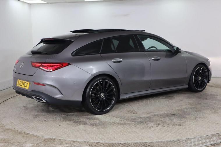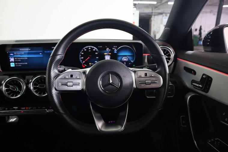 This 2023 Mercedes-Benz CLA180 AMG Line Night Edition (Premium Plus) has had only one owner from new, offering a pristine example of this stylish and well equipped vehicle. Powered by an efficient 1.3 litre petrol engine and meeting Euro 6 emissions standards, this CLA boasts the desirable AMG Line Night Edition trim. Notable features include Headlamp Assist for automatic activation of the headlights, a stunning panoramic roof that can be opened for an airy cabin experience, and THERMOTRONIC luxury automatic climate control with a two zone display to ensure optimal comfort for all occupants. The convenience of the KEYLESS-GO package, allowing for keyless entry, is also included, alongside seamless smartphone integration with both Apple CarPlay and Android Auto. The Premium Plus designation signifies a high level of specification, enhancing the driving experience beyond that of standard models. The inclusion of the panoramic roof and the advanced climate control system are particularly noteworthy, providing a more enjoyable and comfortable environment. Furthermore, the integration of Apple CarPlay and Android Auto ensures that your digital life is easily accessible on the go, making this Mercedes-Benz CLA a sophisticated and practical choice for any discerning driver.