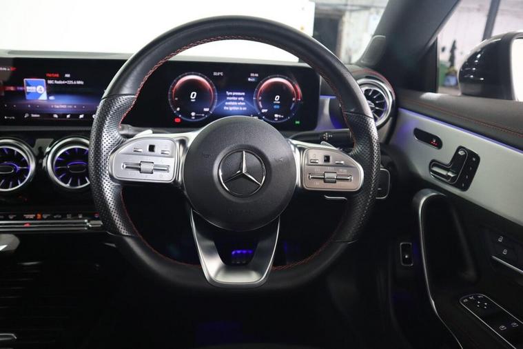 This 2023 Mercedes-Benz CLA250e AMG Line Night Edition (Premium Plus) is a remarkable example, having had only one owner since new. This stylish saloon boasts a 1.3L petrol plug-in hybrid engine, adhering to Euro 6 emissions standards. It comes equipped with a desirable Panoramic Roof, offering an opening sunroof for an enhanced driving experience. Comfort is assured with heated front seats, while the advanced Parking Package, including front and rear sensors and a rear camera, makes manoeuvring effortless. The KEYLESS-GO Package provides convenient keyless entry, and the Mercedes-Benz Sound System, featuring six speakers and a 100W output, delivers an immersive audio experience. The AMG Line Night Edition trim further elevates the CLA's appeal, showcasing its sporty character. The plug-in hybrid technology offers an efficient and flexible driving solution, blending electric power for shorter journeys with the range of a petrol engine. These carefully selected features and the single owner provenance indicate a vehicle that has been well cared for and offers a superior ownership proposition compared to other similar models.