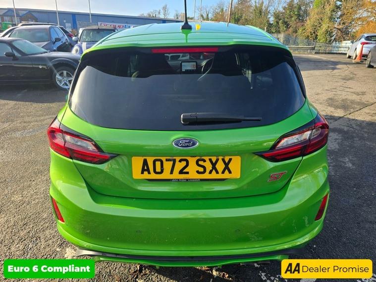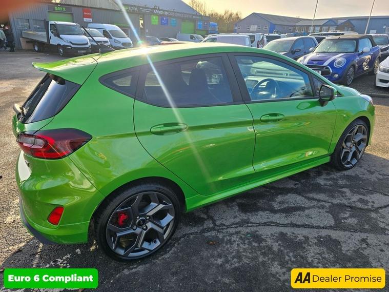 This 2022 Ford Fiesta ST-3 is a superb example, having been owned by just one careful keeper since new. This sporty hatchback boasts a lively 1.5 litre petrol engine, meeting Euro 6 emissions standards. Inside, youll find the advanced SYNC 3 system complete with navigation, and seamless integration for both Android Auto and Apple CarPlay. For added convenience and safety, it features a rear view camera with parking assistance and rear parking distance sensors. The striking Matrix LED headlights, with their signature LED daytime running lights and integrated sequential indicators, ensure excellent visibility. Comfort is assured with electronic automatic temperature control for the air conditioning. Experience exhilarating performance with this Fiesta ST-3, capable of accelerating from 0 to 60 miles per hour in a swift 6.5 seconds. This impressive acceleration highlights how this vehicle offers a more dynamic driving experience compared to many others in its class. The combination of its sporty credentials, advanced technology, and practical features makes this 2022 Ford Fiesta ST-3 a compelling choice for those seeking both excitement and everyday usability.
