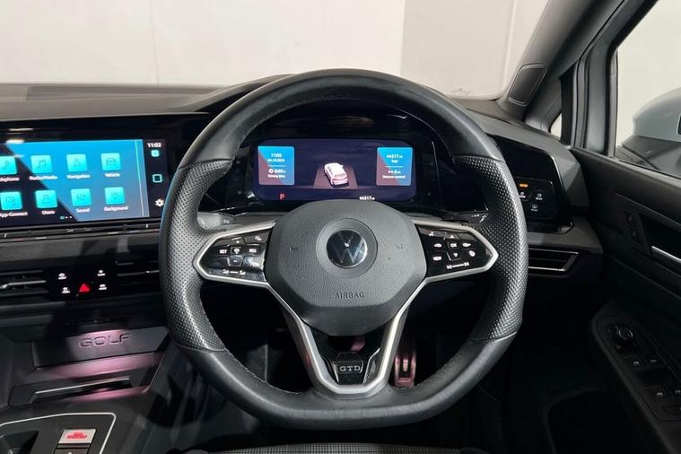 This 2022 Volkswagen Golf TDI GTD offers a rare opportunity with just one owner from new. Powered by a 2.0 litre Euro 6 diesel engine, this GTD model boasts impressive performance, reaching 0-60mph in a swift 7.1 seconds. Its MOT is valid until January 2026, providing peace of mind. Key features include the advanced IQ Light LED Matrix Headlights with Dynamic Cornering, a convenient Wireless Smartphone Charger, and Adaptive Cruise Control for effortless journeys. Furthermore, Travel Assist with Emergency Assist and Side Assist, including Blind Spot Assistance and Rear Parking Sensors, enhances safety and driver awareness. The Discover Navigation Infotainment System, complete with Bluetooth connectivity, keeps you connected and informed. This Golf also offers substantial boot space, making it practical for everyday use and longer trips. These features collectively demonstrate how this particular Volkswagen Golf TDI GTD stands out, offering a refined and technologically advanced driving experience that surpasses many other vehicles in its class.