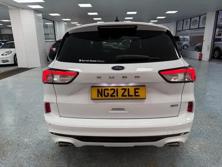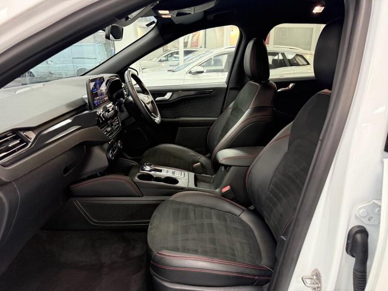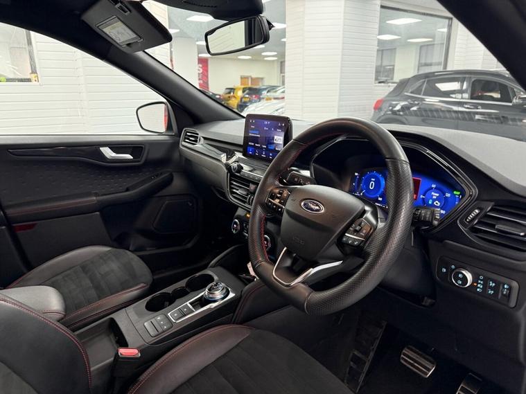 Discover this exceptional 2021 Ford Kuga ST-Line, boasting remarkably low mileage for its age at just 17, 968 miles. This Euro 6 compliant model features a powerful 2.5 litre petrol plug-in hybrid engine, offering an efficient and dynamic driving experience. The ST-Line trim ensures a sporty aesthetic and enhanced driving dynamics. This Kuga is equipped with a host of desirable features designed for comfort and convenience. Enjoy automatic on-off headlights, dual-zone electronic automatic temperature control for personalised cabin comfort, and front and rear parking sensors to assist with manoeuvring. For an immersive audio experience, it includes a Bang and Olufsen premium sound system, and the Ford Key Free system allows for effortless keyless entry and start. The low insurance group rating further highlights its value, indicating it is more economical to insure than many comparable vehicles.