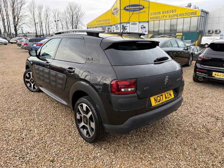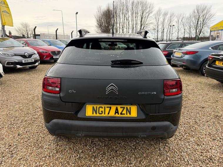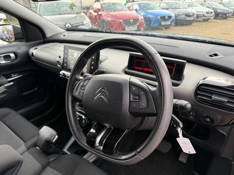 This 2017 Citron C4 Cactus 1.2 PureTech Flair Automatic is a stylish and economical hatchback offering smooth automatic driving and a strong level of specification. Finished in black and having covered just 34, 449 miles, it is ideal for comfortable everyday use. The interior is modern and practical with a 7 inch Touch Drive Interface, satellite navigation, DAB digital radio, Bluetooth media streaming, USB connectivity, and steering wheel mounted controls. Comfort is enhanced by sofa style front seats, a height adjustable drivers seat, bi tone leather steering wheel, and generous storage throughout the cabin. Externally, the car stands out with 17 inch diamond cut alloy wheels, Airbump protection, dark tinted rear windows, gloss black styling details, and roof bars. Convenience features include rear parking sensors, LED daytime running lights, and front fog lights with cornering function. Safety and driver assistance equipment includes rear ISOFIX points, cruise control with speed limiter, electronic stability control, tyre pressure monitoring, and a full airbag system. The vehicle will be supplied fully serviced and with a fresh 12 month MOT. As a December only promotion, this vehicle also includes a FREE 12 month parts and labour warranty, giving added peace of mind. A low running cost automatic hatchback with excellent fuel economy and a high specification, ideal for both town driving and longer journeys.