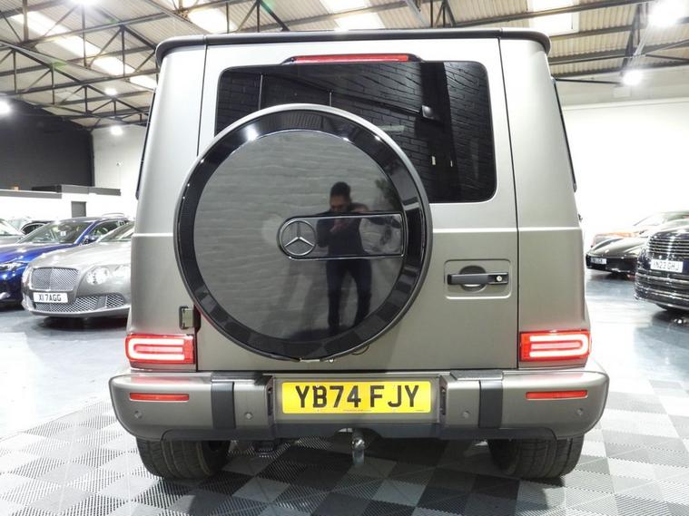 VAT QUALIFYING - 1 OWNER - ONLY 8K FROM NEW - JUST BEEN SERVICED BY MERCEDES-BENZ BEDFORD - HUGE SPEC - WRAPPED INN MATTE CHARCOAL WITH AMG BLACK ALLOYS - SAT NAV - FULL HEATED LEATHER INTERIOR - A/C This 2024 Mercedes-Benz G Class G63 V8 BiTurbo AMG presents an exceptional ownership opportunity with a mere 8000 miles on the clock, having been cherished by only one owner. This Euro 6 compliant, four wheel drive powerhouse boasts a formidable 4.0 litre petrol engine, delivering exhilarating performance with a 0-60mph acceleration in just 4.5 seconds. Its impressive towing weight of 3500 kg ensures capability for a variety of needs, while the spacious boot offers ample room for luggage or equipment. Experience unparalleled comfort and convenience with the advanced Driving Assistance Package, featuring Blind Spot Assistance, and the Parking Package complete with a 360-degree camera and front and rear sensors. The THERMOTRONIC automatic climate control allows for personalised comfort across three distinct zones and styles. Further enhancing the driving experience is the electric sliding sunroof, offering a touch of open air motoring. These carefully selected features demonstrate how this G63 AMG stands out, offering a superior blend of performance, luxury, and advanced technology.