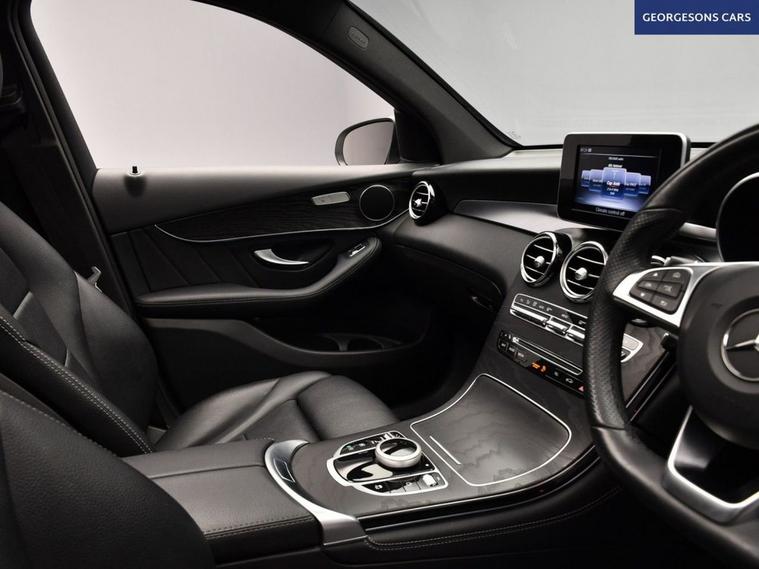 The Mercedes-Benz GLC 250 AMG Night Edition combines a responsive 2.0-litre turbo petrol engine with 211hp, delivering 0-62mph in 7.3 seconds and up to 39.7mpg in this all-wheel-drive 4MATIC setup with a smooth 9-speed G-Tronic+ automatic transmission. The flagship AMG Night Edition brings premium style with 20-inch black alloys, gloss black exterior pack and a high-grade interior. With four services, this GLC is in excellent condition. Enjoy the expansive panoramic roof for an airy cabin feel and ambient lighting for a refined atmosphere. Electric tailgate makes loading easy. Stay connected with Bluetooth and DAB radio. Parking is a breeze thanks to the reverse camera and parking sensors. Cruise control with speed limiter and push-button start add everyday refinement. The spacious five-door SUV includes a 550-litre boot for practicality.