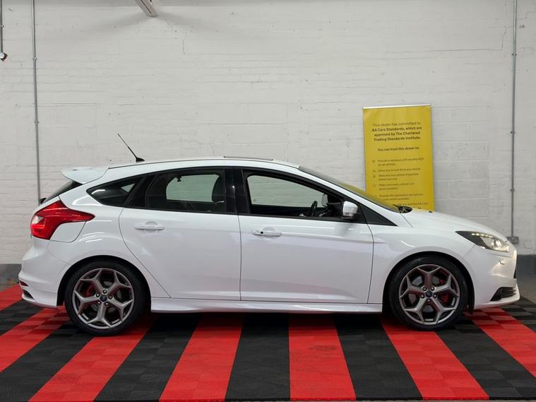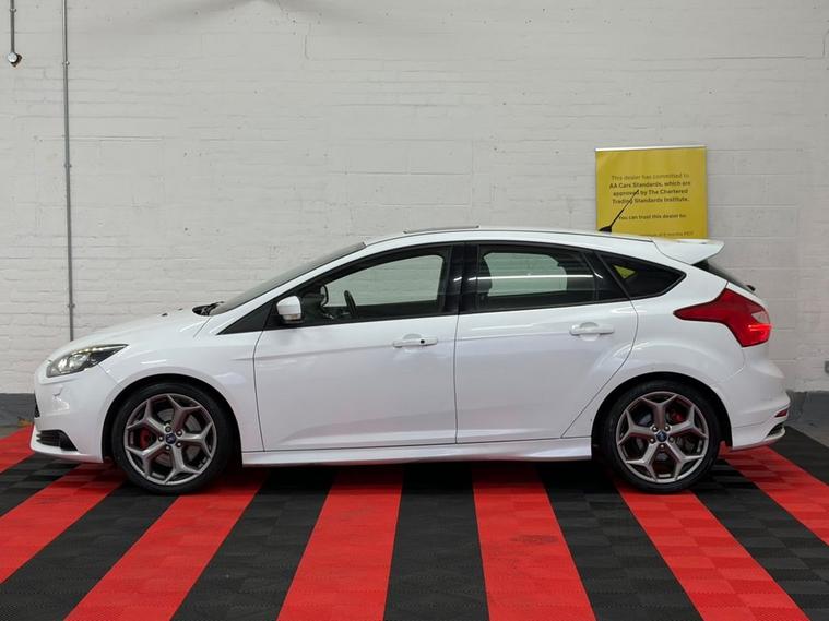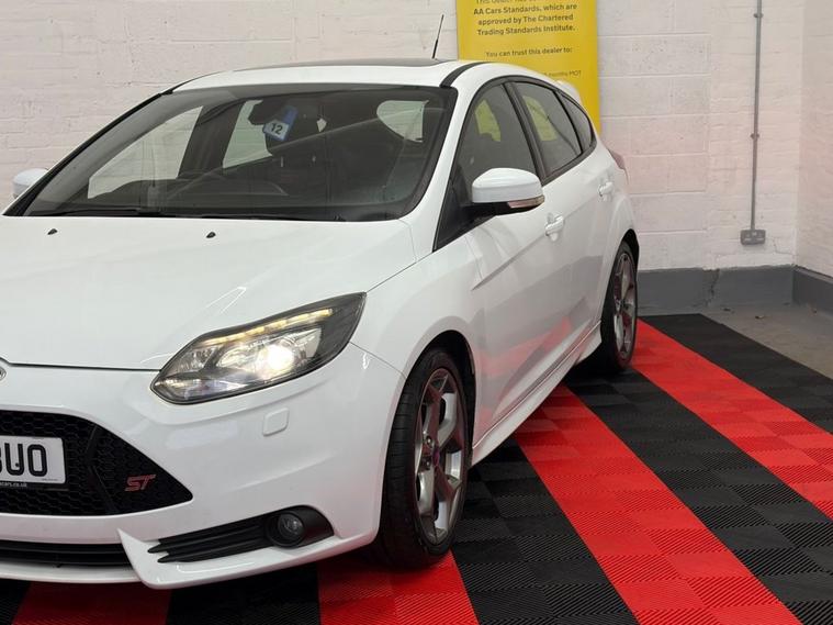 Here at Select Carz, were delighted to offer this striking 2013 (63) Ford Focus ST-3 2.0T EcoBoost Hatchback, finished in crisp White and boasting the sought-after 250 PS performance setup. With 94, 000 miles and 4 previous owners, this ST-3 remains a fantastic example of Fords iconic hot hatch, delivering exhilarating performance with everyday practicality. Powered by the punchy 2.0-litre EcoBoost turbocharged petrol engine and paired with a smooth 6-speed manual gearbox, this Focus ST offers rapid acceleration, sharp handling and an engaging driving experience every time you get behind the wheel. The Euro 5 engine also benefits from start/stop technology, helping to balance performance with efficiency. The ST-3 specification means this car comes exceptionally well equipped, featuring supportive Recaro sports seats, part-leather interior, dual-zone climate control, keyless start, touchscreen infotainment with Bluetooth connectivity, and premium alloy wheels. The aggressive ST styling, twin exhausts and sporty detailing ensure it looks as good as it drives. Practical as well as exciting, the 5-door hatchback layout offers generous boot space and everyday usability, making it ideal for both spirited drives and daily commuting. This Focus ST-3 represents outstanding value for money and is a must-see for performance car enthusiasts. Viewings and test drives are welcome at Select Carz contact us today.