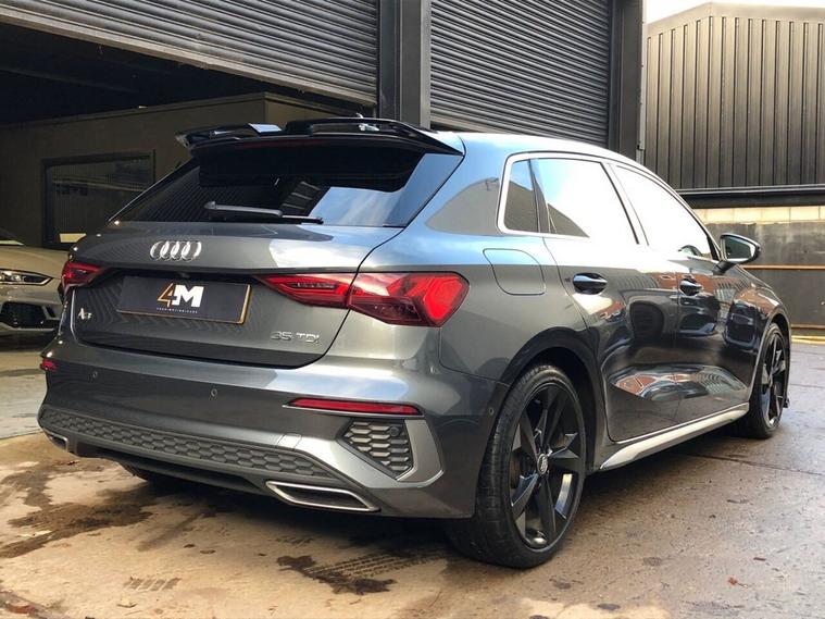 This 2020 Audi A3 TDI S line boasts a full service history, offering peace of mind alongside its premium features. This Euro 6 compliant model is equipped with a powerful 2.0 litre diesel engine and comes with a 3 month warranty for added security. Its striking appearance is enhanced by 18 inch 5-Y-spoke style alloy wheels in diamond cut graphite grey and a sophisticated Matrix LED Exterior Lighting Pack, ensuring excellent visibility. Experience refined comfort with the dual zone electronic climate control and convenient parking with the rear parking sensors. The A3 TDI S line also includes a useful storage package. This particular model accelerates from 0 to 60mph in a brisk 8.3 seconds, demonstrating its responsive performance which sets it apart from other vehicles in its class.