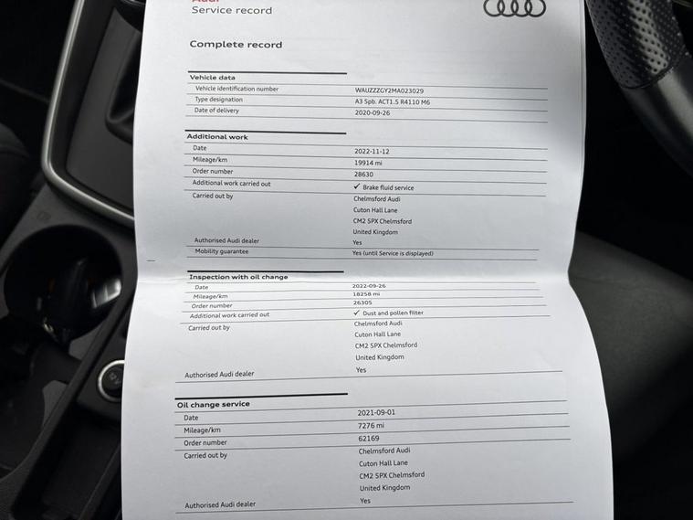 This 2020 Audi A3 TFSI S line boasts a clear vehicle history, offering you peace of mind. This stylish hatchback features a 1.5 litre Euro 6 petrol engine, known for its efficiency and smooth performance. The S line trim enhances its sporty appeal, and youll appreciate the convenience of LED headlights with dynamic rear indicators, a Bluetooth interface for seamless connectivity, and rear parking sensors to aid manoeuvring. The light and rain sensor automatically adjusts the headlights, while the dual-zone electronic climate control ensures a comfortable cabin temperature for all occupants. Experience the responsive acceleration of this Audi A3, achieving 0-60mph in just 8.7 seconds. This performance, combined with its Euro 6 emission classification, demonstrates its modern engineering and consideration for environmental standards. The inclusion of features like automatic headlights and parking assistance highlights its advanced technology, making it a refined choice for your next vehicle.