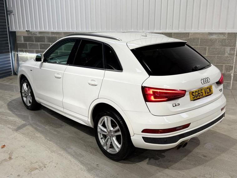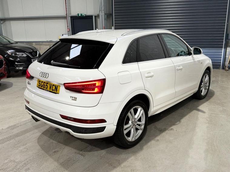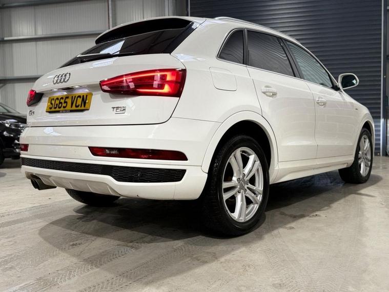 GB Auto-Care presents this stunning Audi Q3 1.4 TFSI CoD S line Euro 6 (s/s) 5dr. Boasting huge spec and sportiness! Comes with a MOT untill July 26, vehicle will go through our onsite workshop for a full Pre sale Mechanical Inspection and a full service, will leave us with a 6 month premium Warranty with nationwide breakdown included and with options to extend. FINANCE AVAILABLE NATIONWIDE HOME DELIVERY PART X WELCOME With an MOT valid until July 2026 and a clear vehicle history check, this 2015 Audi Q3 TFSI S line offers peace of mind. This stylish SUV is equipped with a 1.4 litre petrol engine and meets Euro 6 emissions standards. It benefits from a partial service history, with the last service completed on 27 November 2025 at 80, 318 miles. The Q3 S line comes with a 6 month warranty for added reassurance. Notable features include a Comfort Package with front parking assistance, the Audi Phone Box for wireless phone charging, and Audi Parking System Plus with Park Assist. Youll also appreciate the convenience of heated front seats and Audi Hill Hold Assist. This Audi Q3 TFSI S line stands out with its impressive fuel economy, achieving up to 50 miles per gallon, and its low CO2 emissions, making it an economical choice. Its acceleration from 0 to 60 miles per hour in just 8.9 seconds demonstrates a responsive driving experience. These highlights indicate that this Q3 offers a compelling blend of efficiency and performance compared to other vehicles in its class.