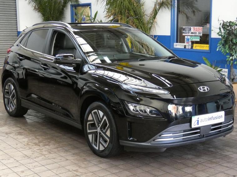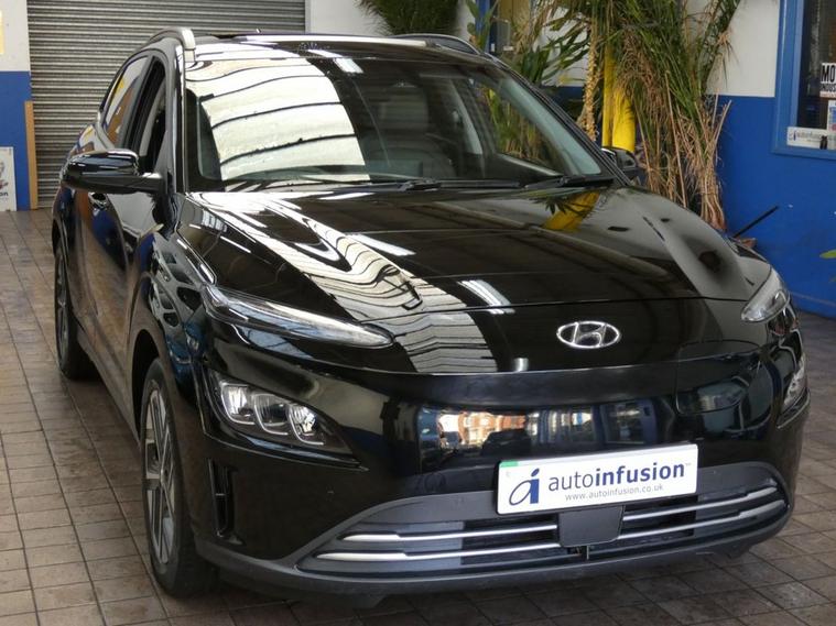 This 2022 Hyundai KONA Ultimate Electric boasts an exceptionally low mileage of just 33, 541 miles, having had only one owner since new. Excellent Service history 3 services to 29, 833 miles July 2025, Mot Till Nov 2026, Hyundai warranty till Nov 2027. As an Ultimate variant, it offers a sporty aesthetic and is powered by a 65.4 kWh battery, providing a maximum range of 300 miles. For convenience, it features Sunroof, Sat nav, heated seats, cruise control, and keyless entry with a start-stop button. Parking is made easier with part assist camera and front and rear parking sensors. The Kona Ultimate is designed for modern driving, with a full charge at home taking approximately 10 hours and 16 minutes using a 7kW charger. For longer journeys, a rapid charge can take it from empty to 80% in just 53 minutes. These features, combined with its impressive range and low mileage, position this Hyundai KONA Ultimate Electric as a compelling choice for those seeking an efficient and well equipped electric vehicle. Please call for more details Autoinfusion Ltd, is a family run business with over 30 years motoring experience. On our website you will find our vehicles are generally advertised with upto 100 exterior and interior pictures, 360 interior images, exterior panoramic views and web video showcasing our stock. As an AA approved garage, prior to sale, the majority of our vehicles are inspected by an AA trained technician and pass a full 128 multi-point AA inspection, these cars are highlighted on our website with the AA logo. Please note AA inspections are also available on request if the vehicle has not yet been inspected. All of our stock is constantly price checked ensuring you pay and receive the best package. You will also find details of special promotions on our website. Contact us to book an appointment for a viewing and test drive. We can conduct a live viewing of the vehicle to your mobile device or send you a personalised video highlighting the key features or anything else you may require, which can be viewed in your own time. With our Finance options we can provide class leading packages and rates. We highly recommend you reserve this car on-line , please visit dealer's website or call one of our sales specialists for more information. We look forward to welcoming you to Autoinfusion.