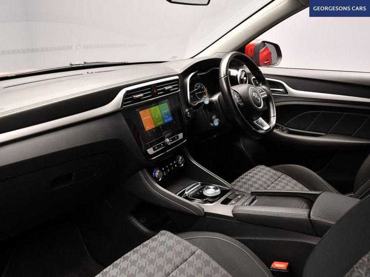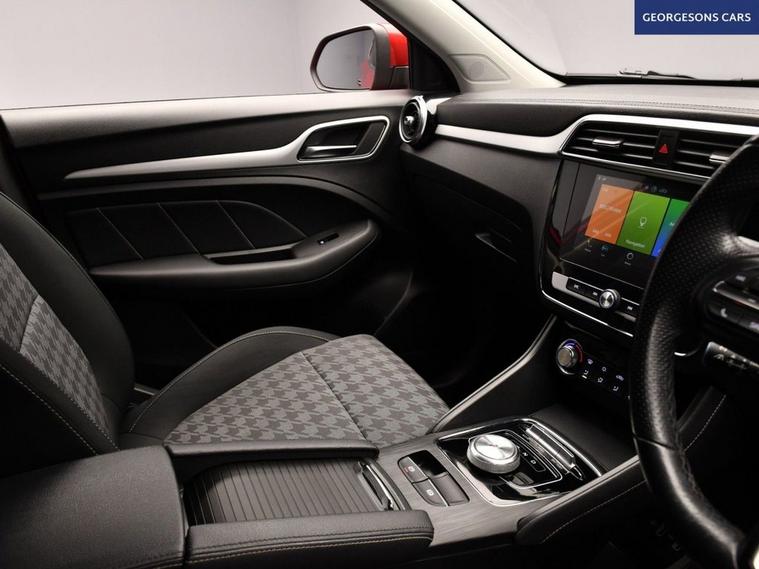 The MG ZS 44.5kWh Excite combines a smooth electric motor with 176hp, delivering 0-62mph in 8.2 seconds and up to 198 miles WLTP range in this front-wheel-drive setup with instant single-speed transmission. The Excite trim offers stylish value with 17-inch alloys and a premium interior. Stay connected with Apple CarPlay, Bluetooth and DAB radio. Integrated satellite navigation keeps you on track. Parking is easy with rear parking sensors. Stay comfortable with air conditioning. Adaptive cruise control and push-button start make every journey relaxed and convenient. The spacious five-door SUV includes a 448-litre boot.