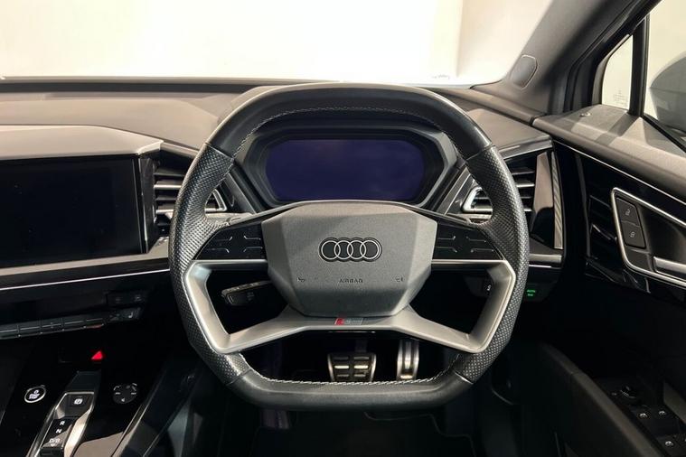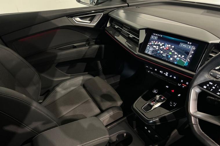 This 2022 Audi Q4 e-tron S line is a superb example, having had only one owner since new. As a fully electric vehicle, it offers a smooth and quiet driving experience, boasting a substantial 82 kWh battery capacity. This allows for an impressive maximum range of 312 miles when new, ensuring you can travel further on a single charge. For convenience, a full charge at home using a 7kW charger takes approximately 11 hours and 30 minutes, while rapid public charging can replenish the battery from empty to 80% in as little as 30 minutes. The vehicles MOT is valid until November 2026, providing peace of mind. Inside, the Q4 e-tron S line is equipped with desirable features to enhance your journeys. Enjoy the comfort of heated front seats and the convenience of 3-zone electronic climate control, allowing everyone to set their preferred temperature. The Audi Smartphone Interface seamlessly integrates your phone, offering access to Android Auto and Apple CarPlay. Further enhancing the driving experience are LED headlights with distinctive LED daytime running lights. This Audi Q4 e-tron also offers generous boot space, making it a practical choice for families and those needing extra room. The 312 mile range highlights its capability for longer trips, setting it apart from many other electric vehicles.