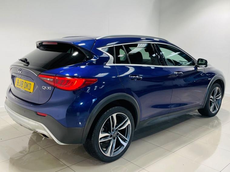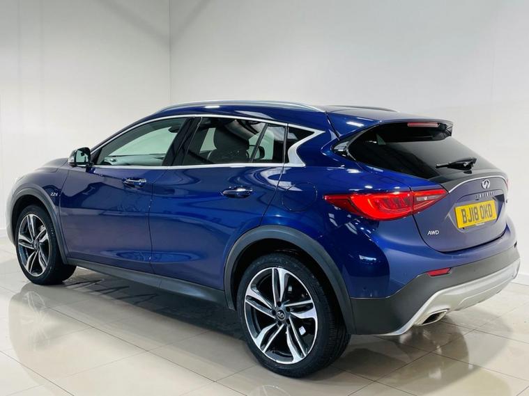 2018 INFINITI QX30 Luxe Tech Registration: BJ18 OKD Colour: Metallic Ink Blue with Black Leather Interior This Metallic Ink Blue INFINITI QX30 Luxe Tech has covered 93k miles from new and offers a refined blend of premium comfort, technology and distinctive styling. A well-specified example featuring luxury touches throughout, supplied with an AA 128-Point Inspection, Free HPI Certificate, and nationwide warranty options available for added peace of mind Performance & Handling: Smooth and refined driving experience Comfortable suspension setup ideal for daily and motorway use Cruise Control for relaxed long-distance journeys Premium Features & Styling Metallic Ink Blue paintwork Glass Sunroof Luxe Tech exterior and interior detailing Premium BOSE sound system Technology & Interior: Satellite Navigation Bluetooth Connectivity BOSE Premium Audio Black Leather Upholstery Heated Front Seats Electric Memory Seats Dual Climate Control Multifunction Steering Wheel High-quality INFINITI interior finish Additional Information: AA 128-Point Inspection Passed (report available) Free HPI Certificate Provided Nationwide Warranty Packages Available Any inspection more than welcome Indoor viewing available Up to 20 photos available on our website Over 100 cars in stock Debit card payments welcome Approved finance partner with full consumer credit licence Part exchange welcome Private plate transfers & delivery service available on request Included with the Vehicle: AA 128-Point Inspection Report Free HPI Certificate Nationwide warranty options available For more information or to reserve this vehicle with a deposit, please get in touch to arrange a viewing or discuss finance options.