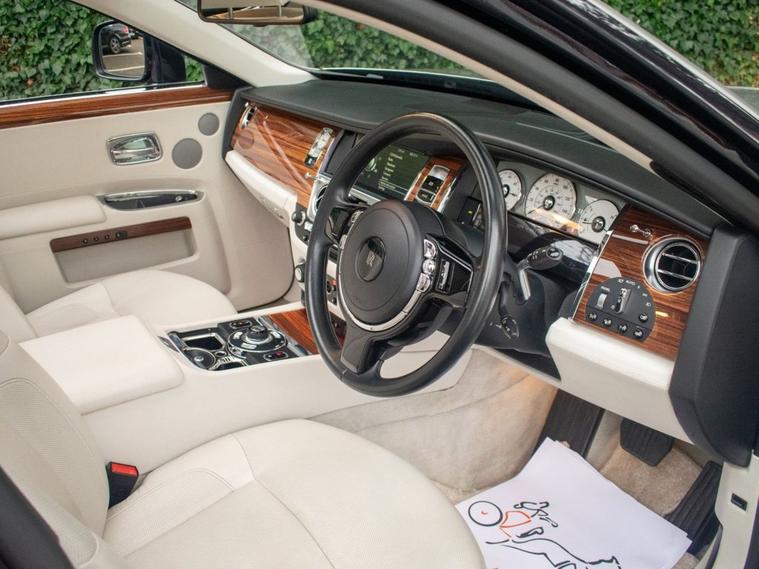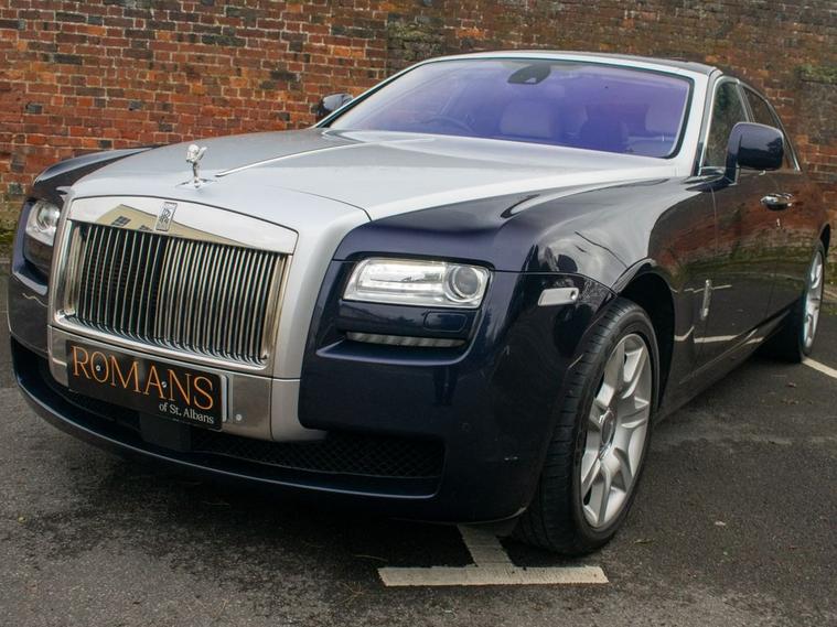 DEPOSIT TAKEN-SIMILAR WANTED! Just serviced by Rolls Royce, Romans of St Albans are delighted to present this Elegant Rolls Royce Ghost finished in Dark Indigo paintwork with Silver Satin bonnet finish and Seashell Leather/Malabar Veneer interior. This exquisite example benefits from only ever being service by Rolls Royce main dealer and has a massive spec list with over £45, 000 worth of extras to include: Drivers Assistance Systems Pack- Three- Ghost, Camera System, Leather- Extended & door pocket Lighting, 20in Alloy Wheels, Veneer- Malabar, Silver Satin bonnet finish, RR monogram all headrests, Colour keyed boot Trim, Lambswool rugs - footwells, Picnic tables, Night Vision, Rear theatre configuration with 6 disc Multi- Media Changer, Head-Up Display, TV tuner, Active Cruise Control with stop & go, Lane Departure Warning, High Beam Assist, Adaptive Headlights, Individual Rear Seats, Massage function for Rear Seats, Ventilated Front&Rear Seats, Massage function for Front Seats, Panorama Electric Glass Sunroof, Comfort access System, Garage door opener...FINANCE AVAILABLE. FREE ON-SITE PARKING (ASK FOR DETAILS.) Romans after care package includes: Romans warranty for 6 months (12, 24 & 36 months are available), Main dealer cover available, Full Romans service prior to delivery, 84 point vehicle inspection, 12 months MOT, Free Life time MOT when servicing with us (ask for details), Total value of package: £2000 - ALL INCLUSIVE IN THE PRICE. All of our clients have the added peace of mind that we have our own workshop facilities with free courtesy cars. Part Exchange very welcome, nationwide delivery also available. To avoid a wasted journey we highly recommend making an appointment, so call us now to get yours booked! Romans provide the highest of quality vehicles, and have at least 80 cars in stock at any one time. This means not all cars can be kept on site. This will also allow us to give you our fully undivided attention when viewing the vehicle you are interested in, WE ARE LOOKING TO BUY YOUR TOP SPEC, LOW MILEAGE, FULL SERVICE HISTORY PRESTIGE, SPORTS, AND 4X4 VEHICLES. GET MORE FOR YOUR VEHICLE BY EITHER SELLING TO US, OR ASKING US TO SELL YOUR VEHICLE FOR YOU. PRIVATE BUYERS WANT WARRANTIES, THEY WANT TO PART EXCHANGE, THEY WANT FINANCE - TAKE ADVANTAGE OF ALL OUR FACILITIES. CALL US NOW TO DISCUSS GETTING RID OF YOUR VEHICLE QUICKLY.