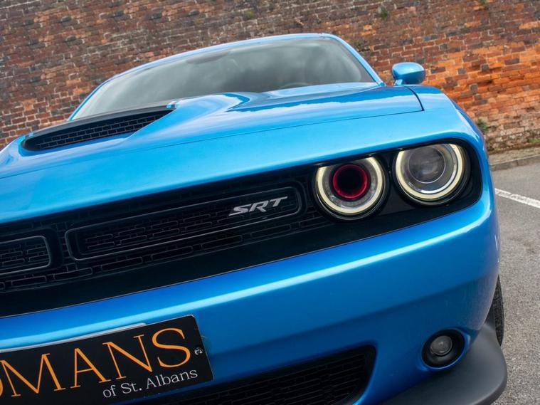 DEPOSIT TAKEN-SIMILAR WANTED! Romans of St Albans are delighted to present this rare Florida, USA Imported Dodge Challenger SRT in Blue Pearl Paint with Black Nappa Leather/Alcantara Interior, that we sold August 2023 and it is back with us looking even better and has 4x new tyres fitted! This rare manual example has been registered in the UK since 2016 and benefits from options to include: HellCat Air Intake, Reversing Camera, Cruise Control, Bluetooth, Heated Steering Wheel, Driver Electric Heated/Cooled Seat, Rain Sensitive Windshield, GPS Navigation, U Connect, Auto High Beam Control, Harman/Kardon Speakers and much more. FINANCE AVAILABLE. A £299 admin fee applies to third party finance companies being used. . ULEZ COMPLIANT. FREE ON-SITE PARKING (ASK FOR DETAILS.) Romans after care package includes: Romans warranty for 6 months (12, 24 & 36 months are available), Main dealer cover available, Free breakdown cover for warranty duration, Full Romans service prior to delivery, 84 point vehicle inspection, 12 months MOT, Free Life time MOT when servicing with us (ask for details), Total value of package: £2000 - ALL INCLUSIVE IN THE PRICE. All of our clients have the added peace of mind that we have our own workshop facilities with free courtesy cars. Part Exchange very welcome, nationwide delivery also available. To avoid a wasted journey we highly recommend making an appointment, so call us now to get yours booked! Romans provide the highest of quality vehicles, and have at least 80 cars in stock at any one time. This means not all cars can be kept on site. This will also allow us to give you our fully undivided attention when viewing the vehicle you are interested in, WE ARE LOOKING TO BUY YOUR TOP SPEC, LOW MILEAGE, FULL SERVICE HISTORY PRESTIGE, SPORTS, AND 4X4 VEHICLES. GET MORE FOR YOUR VEHICLE BY EITHER SELLING TO US, OR ASKING US TO SELL YOUR VEHICLE FOR YOU. PRIVATE BUYERS WANT WARRANTIES, THEY WANT TO PART EXCHANGE, THEY WANT FINANCE - TAKE ADVANTAGE OF ALL OUR FACILITIES. CALL US NOW TO DISCUSS GETTING RID OF YOUR VEHICLE QUICKLY.