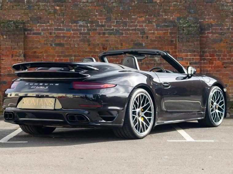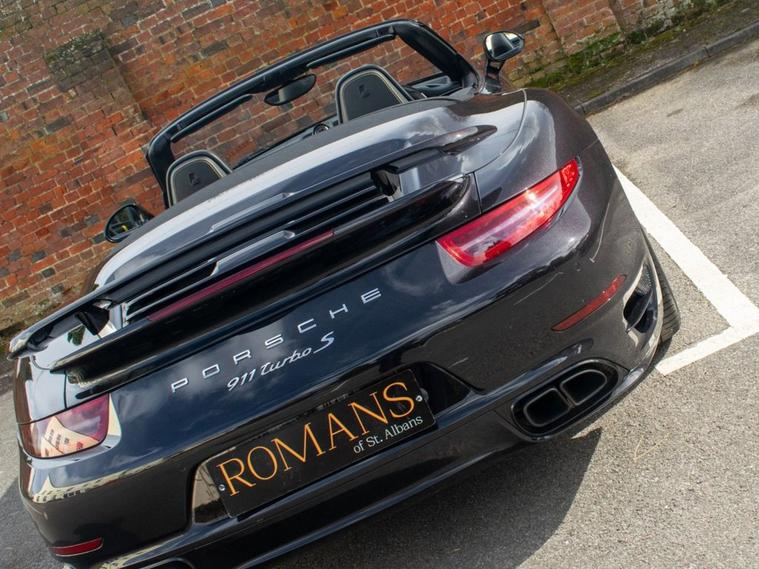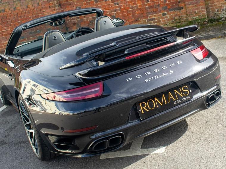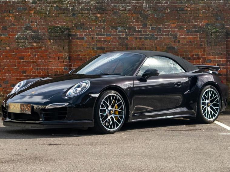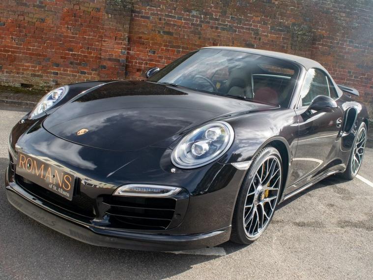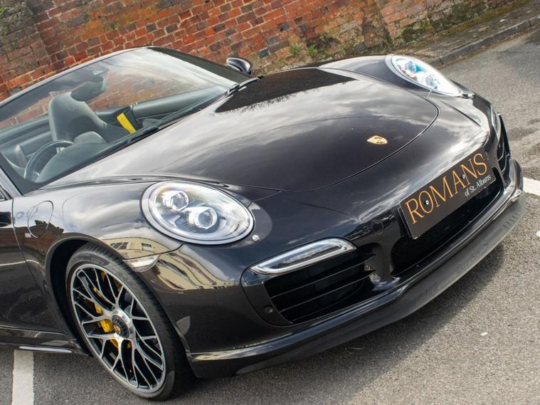 SOLD - SIMILAR CARS WANTED FOR STOCK! Romans of St Albans are delighted to present this impressive Basalt Black 991 Turbo S Cabriolet with black leather and Carbon trim interior. Long list of optional extras include: Full PPF (Paint Protection Film), Reversing Camera Including Park Assist Front and Rear, PCCB - Porsche Ceramic Composite Brakes, Rear Axle Steering, Steering Wheel - Heated - Multi-Function - Carbon, Door Sill Guards - Carbon - Illuminated, Light Design Package, Carbon Centre Console Trim, Interior Package - Carbon, Porsche Crest Embossed on Head Restraints, Seat Belts - Racing Yellow, Contrast Stitching - Racing Yellow, Door Mirrors - SportDesign, Floor Mats.. FINANCE AVAILABLE. FREE ON-SITE PARKING (ASK FOR DETAILS.) Romans after care package includes: Romans warranty for 6 months (12, 24 & 36 months are available), Main dealer cover available, Free breakdown cover for warranty duration, Full Romans service prior to delivery, 84 point vehicle inspection, 12 months MOT, Free Life time MOT when servicing with us (ask for details), Total value of package: £2000 - ALL INCLUSIVE IN THE PRICE. All of our clients have the added peace of mind that we have our own workshop facilities with free courtesy cars. Part Exchange very welcome, nationwide delivery also available. To avoid a wasted journey we highly recommend making an appointment, so call us now to get yours booked! Romans provide the highest of quality vehicles, and have at least 80 cars in stock at any one time. This means not all cars can be kept on site. This will also allow us to give you our fully undivided attention when viewing the vehicle you are interested in, WE ARE LOOKING TO BUY YOUR TOP SPEC, LOW MILEAGE, FULL SERVICE HISTORY PRESTIGE, SPORTS, AND 4X4 VEHICLES. GET MORE FOR YOUR VEHICLE BY EITHER SELLING TO US, OR ASKING US TO SELL YOUR VEHICLE FOR YOU. PRIVATE BUYERS WANT WARRANTIES, THEY WANT TO PART EXCHANGE, THEY WANT FINANCE - TAKE ADVANTAGE OF ALL OUR FACILITIES. CALL US NOW TO DISCUSS GETTING RID OF YOUR VEHICLE QUICKLY.