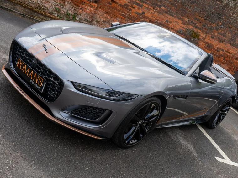 DEPOSIT TAKEN-SIMILAR WANTED! Romans of St Albans are delighted to present this remarkable Eiger Grey Metallic Jaguar F-Type 2.0i R-Dynamic Convertible with Manufacturers Warranty Till May 2029! With a wide range of spec to include: black leather and suede interior, 20-inch gloss black diamond-turned alloy wheels, heated electric memory seats, heated steering wheel, heated windscreen, power-folding heated wing mirrors, dual-zone climate control, blind spot monitoring, front and rear parking sensors with reversing camera, LED dynamic headlights and taillights, Meridian surround sound system with 10 speakers, electric convertible roof, paddle shifters and much more! ...FINANCE AVAILABLE. A £299 admin fee applies to third party finance companies being used. ULEZ COMPLIANT. FREE ON-SITE PARKING (ASK FOR DETAILS.) Romans after care package includes: Romans warranty for 6 months (12, 24 & 36 months are available), Main dealer cover available, Free breakdown cover for warranty duration, Full Romans service prior to delivery, 84 point vehicle inspection, 12 months MOT, Free Lifetime MOT when servicing with us (ask for details), Total value of package: £2000 - ALL INCLUSIVE IN THE PRICE. All of our clients have the added peace of mind that we have our own workshop facilities with free courtesy cars. Part Exchange very welcome, nationwide delivery also available. To avoid a wasted journey we highly recommend making an appointment, so call us now to get yours booked! Romans provide the highest of quality vehicles, and have at least 80 cars in stock at any one time. This means not all cars can be kept on site. This will also allow us to give you our fully undivided attention when viewing the vehicle you are interested in, WE ARE LOOKING TO BUY YOUR TOP SPEC, LOW MILEAGE, FULL SERVICE HISTORY PRESTIGE, SPORTS, AND 4X4 VEHICLES. GET MORE FOR YOUR VEHICLE BY EITHER SELLING TO US, OR ASKING US TO SELL YOUR VEHICLE FOR YOU. PRIVATE BUYERS WANT WARRANTIES, THEY WANT TO PART EXCHANGE, THEY WANT FINANCE - TAKE ADVANTAGE OF ALL OUR FACILITIES. CALL US NOW TO DISCUSS GETTING RID OF YOUR VEHICLE QUICKLY.
