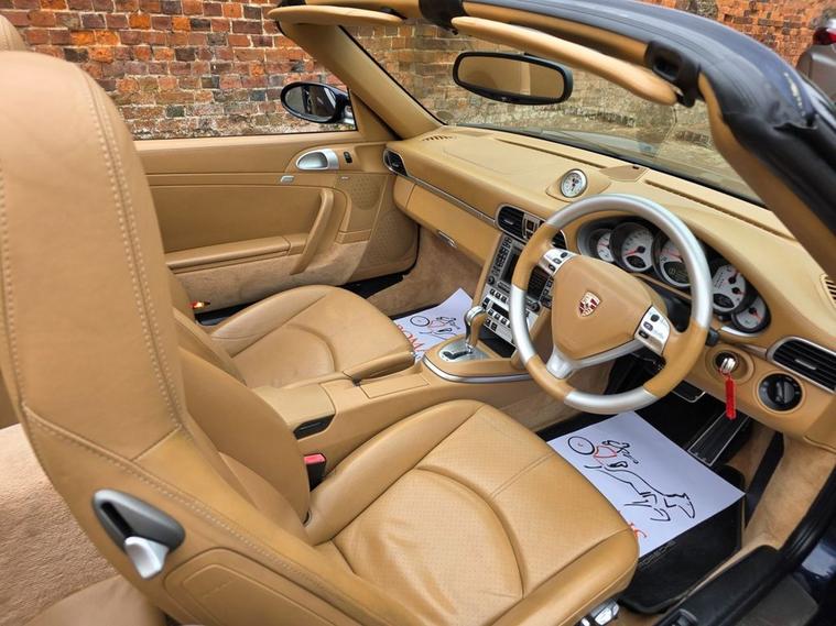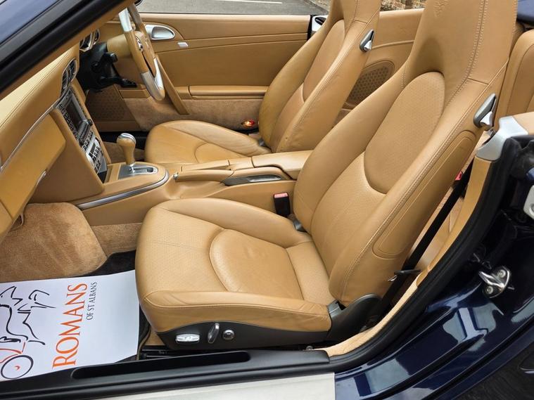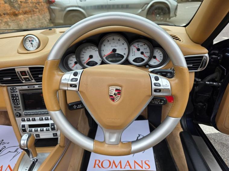 Romans Of St Albans are delighted to present to you this stunning Porsche 997 Turbo Tiptronic Cabriolet Finished in Midnight Blue with Luxor Beige Interior. This also comes with a hardtop making the car fit for all seasons. This Turbo has a range of optional extras to include: Sport Chrono Package, ParkAssist, Cruise control, Seat Heating, HomeLink, Three-spoke multifunction steering wheel with aluminium look trim and Porsche crest embossed on headrest. FINANCE AVAILABLE. A £299 admin fee applies to third party finance companies being used. FREE ON-SITE PARKING (ASK FOR DETAILS.) Romans after care package includes: Romans warranty for 6 months (12, 24 & 36 months are available), Main dealer cover available, Free breakdown cover for warranty duration, Full Romans service prior to delivery, 84 point vehicle inspection, 12 months MOT, Free Life time MOT when servicing with us (ask for details), Total value of package: £2000 - ALL INCLUSIVE IN THE PRICE. All of our clients have the added peace of mind that we have our own workshop facilities with free courtesy cars. Part Exchange very welcome, nationwide delivery also available. To avoid a wasted journey we highly recommend making an appointment, so call us now to get yours booked! Romans provide the highest of quality vehicles, and have at least 80 cars in stock at any one time. This means not all cars can be kept on site. This will also allow us to give you our fully undivided attention when viewing the vehicle you are interested in, WE ARE LOOKING TO BUY YOUR TOP SPEC, LOW MILEAGE, FULL SERVICE HISTORY PRESTIGE, SPORTS, AND 4X4 VEHICLES. GET MORE FOR YOUR VEHICLE BY EITHER SELLING TO US, OR ASKING US TO SELL YOUR VEHICLE FOR YOU. PRIVATE BUYERS WANT WARRANTIES, THEY WANT TO PART EXCHANGE, THEY WANT FINANCE - TAKE ADVANTAGE OF ALL OUR FACILITIES. CALL US NOW TO DISCUSS GETTING RID OF YOUR VEHICLE QUICKLY.