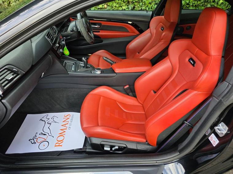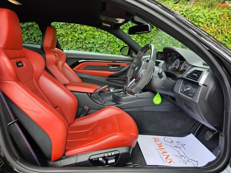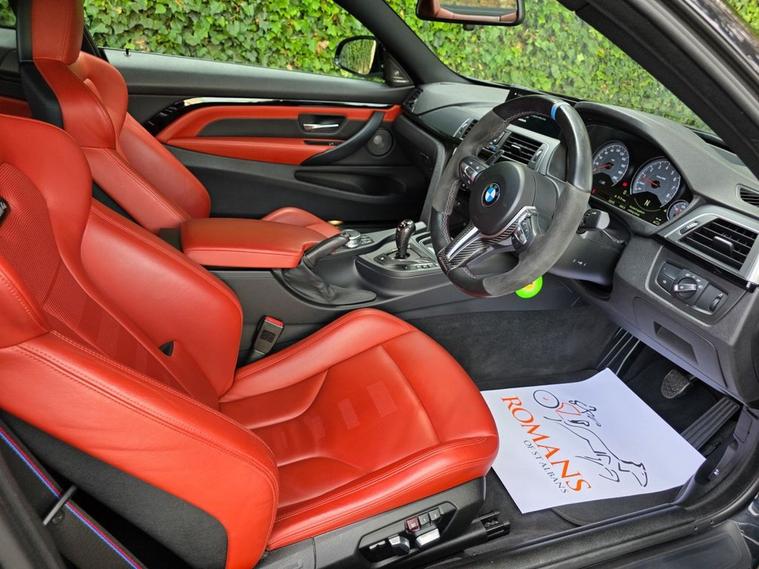 SOLD SIMILAR REQUIRED FOR STOCK Romans Of St Albans are delighted to present this BMW M4 Competition With Black Saphire Paint and Sakhir Orange Leather Seats. This has all the desirable optional extras such as, Head Up Display, Carbon Fibre Exterior Kit, Including Front Splitter, Rear Diffuser, Mirrors, And Side Skirts In Carbon and Carbon Interior Package. It also has Apple Car Play, Reverse Camera and Harmon Kardon. This vehicle has been professionally mapped to 550 BHP. Dyno Available. It also has a Ghost immobiliser fitted. FINANCE AVAILABLE. A £299 admin fee applies to third party finance companies being used. FREE ON-SITE PARKING (ASK FOR DETAILS.)Romans after care package includes: Romans warranty for 6 months (12, 24 & 36 months are available), Main dealer cover available, Free breakdown cover for warranty duration, Full Romans service prior to delivery, 84 point vehicle inspection, 12 months MOT, Free Life time MOT when servicing with us (ask for details), Total value of package: £2000 - ALL INCLUSIVE IN THE PRICE. All of our clients have the added peace of mind that we have our own workshop facilities with free courtesy cars. Part Exchange very welcome, nationwide delivery also available. To avoid a wasted journey we highly recommend making an appointment, so call us now to get yours booked! Romans provide the highest of quality vehicles, and have at least 80 cars in stock at any one time. This means not all cars can be kept on site. This will also allow us to give you our fully undivided attention when viewing the vehicle you are interested in, WE ARE LOOKING TO BUY YOUR TOP SPEC, LOW MILEAGE, FULL SERVICE HISTORY PRESTIGE, SPORTS, AND 4X4 VEHICLES. GET MORE FOR YOUR VEHICLE BY EITHER SELLING TO US, OR ASKING US TO SELL YOUR VEHICLE FOR YOU