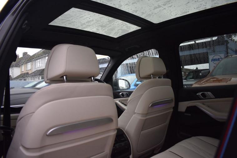 This 2021 BMW X5 45e M Sport offers exceptional peace of mind with its MOT valid until May 2026. This impressive plug in hybrid vehicle boasts a powerful 3.0 litre petrol engine combined with electric power, delivering a dynamic driving experience through its four wheel drive system. Finished in the sought after M Sport trim, it features striking 22 inch M Light Double Spoke Style 742 M Bicolour alloy wheels and luxurious BMW Individual Full Merino Leather in Ivory White. The Sky Lounge panoramic glass sunroof, which includes an opening function, adds an airy feel to the cabin, while the Technology Package, complete with a Head Up Display, enhances convenience and driver focus. Experience exhilarating performance with the X5 45e M Sport, capable of accelerating from 0 to 60mph in just 5.6 seconds, a testament to its advanced engineering. This Euro 6 compliant vehicle also offers practicality, with a large boot space perfect for luggage or shopping. For those needing to tow, the electrically folding towbar provides a substantial towing weight of 2700 kg, making it a versatile choice for both daily commutes and weekend adventures. These features collectively highlight how this BMW X5 stands out from other vehicles in its class.