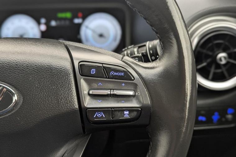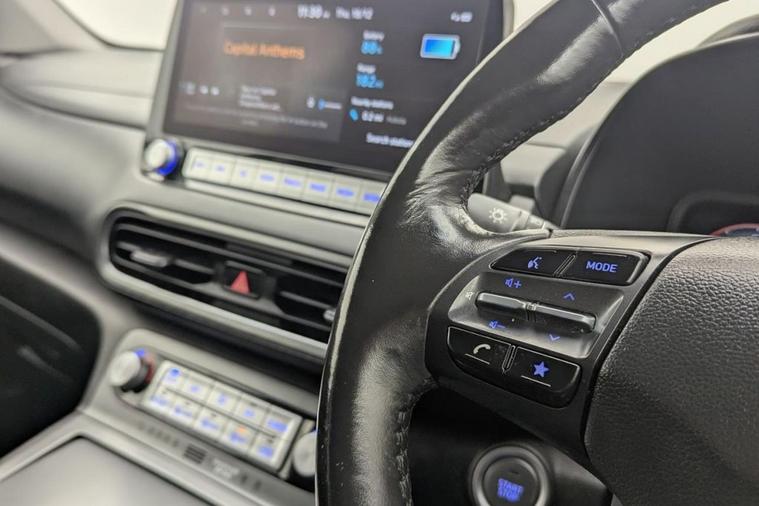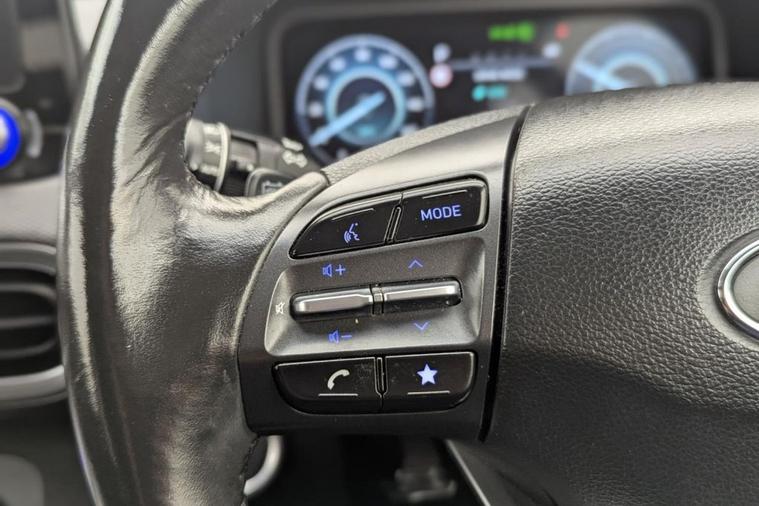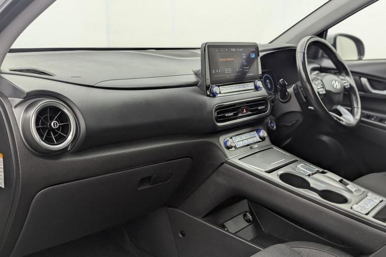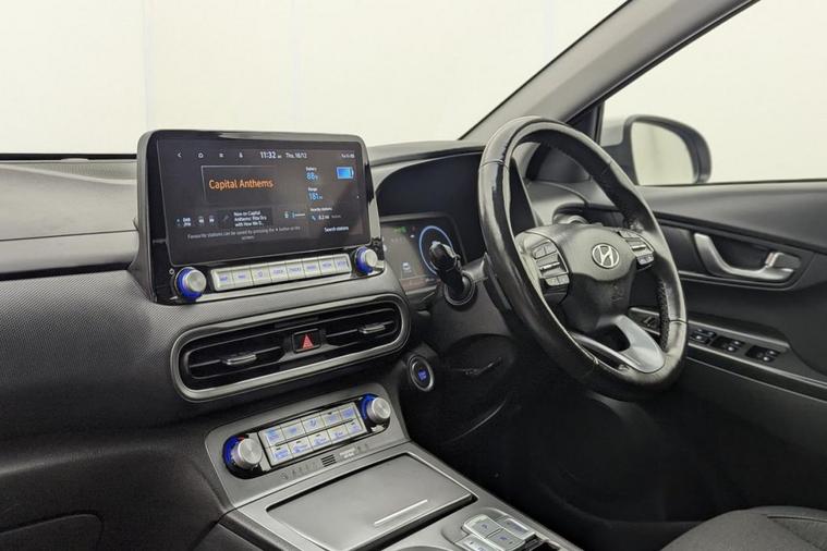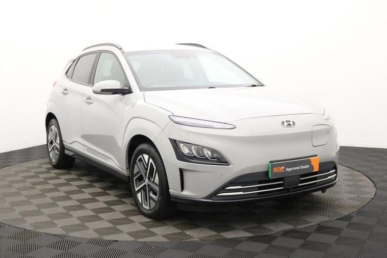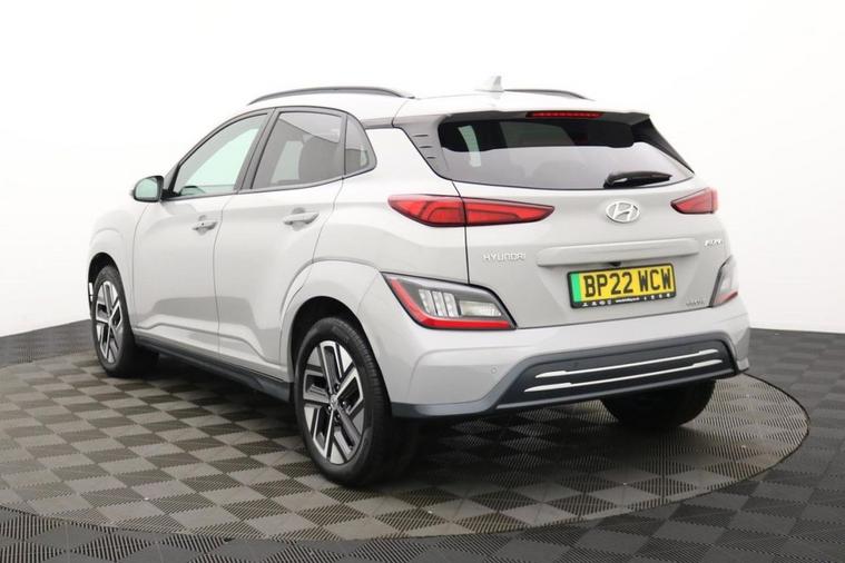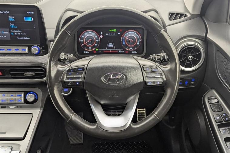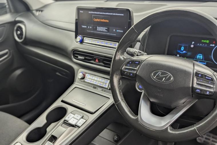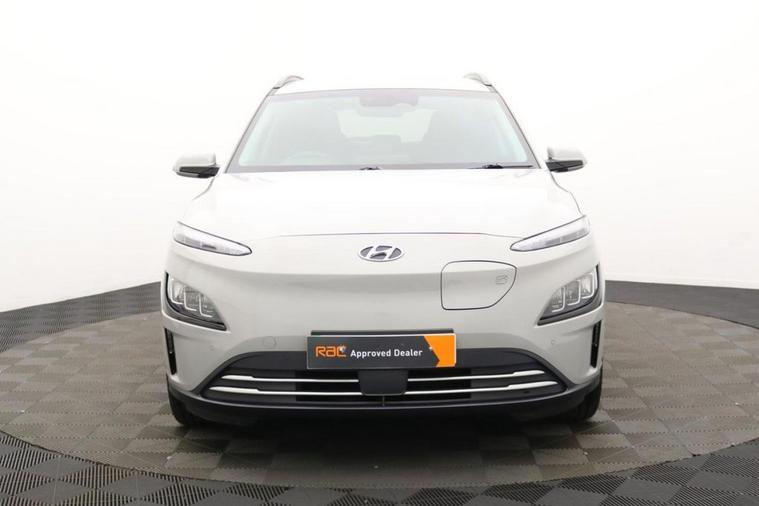 Henson Car Store presents the HYUNDAI KONA 64kWh Premium SUV 5dr Electric Auto (10.5kW Charger) finished in Grey, this car comes with service history and is VAT qualifying. This 2022 Hyundai KONA Premium Electric is a superb example, having had only one owner since new. This stylish electric SUV boasts a substantial 68 kWh battery, offering an impressive maximum range of 300 miles when new, ensuring you can travel further on a single charge. Convenience is key with features like automatic headlights that activate with the dusk sensor, and a heated steering wheel for those colder mornings. Stay connected and in control with Bluetooth connectivity featuring voice recognition, and enjoy effortless journeys thanks to the smart adaptive cruise control with stop and go functionality. Parking is made simple with the rear camera and guidance system. The Hyundai KONA Premium Electric stands out with its exceptional range of 300 miles, a significant advantage over many other electric vehicles. Recharging is efficient, with a full charge at home using a 7kW charger taking approximately 10 hours and 16 minutes, and a rapid charge from empty to 80% achievable in just 53 minutes at a public charging station. These capabilities highlight how this KONA offers a superior ownership experience, combining practicality, advanced technology, and impressive electric performance for your everyday driving needs.