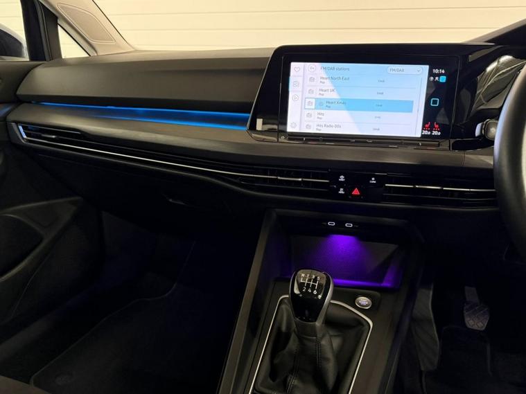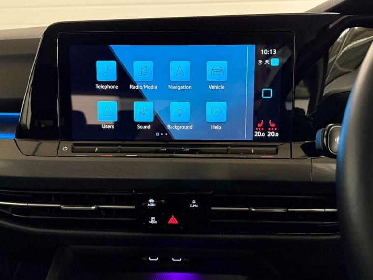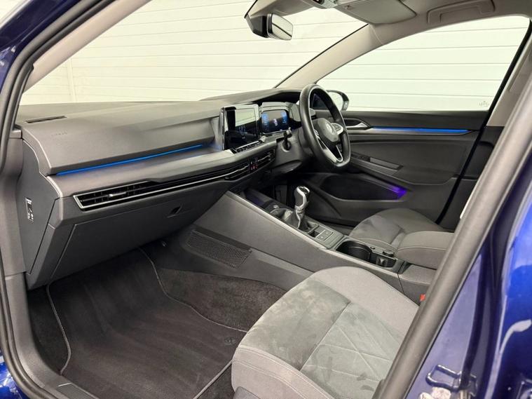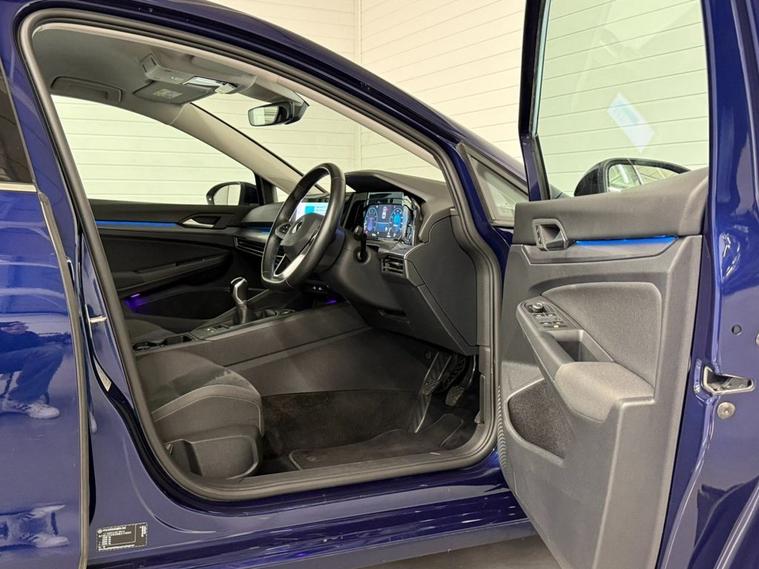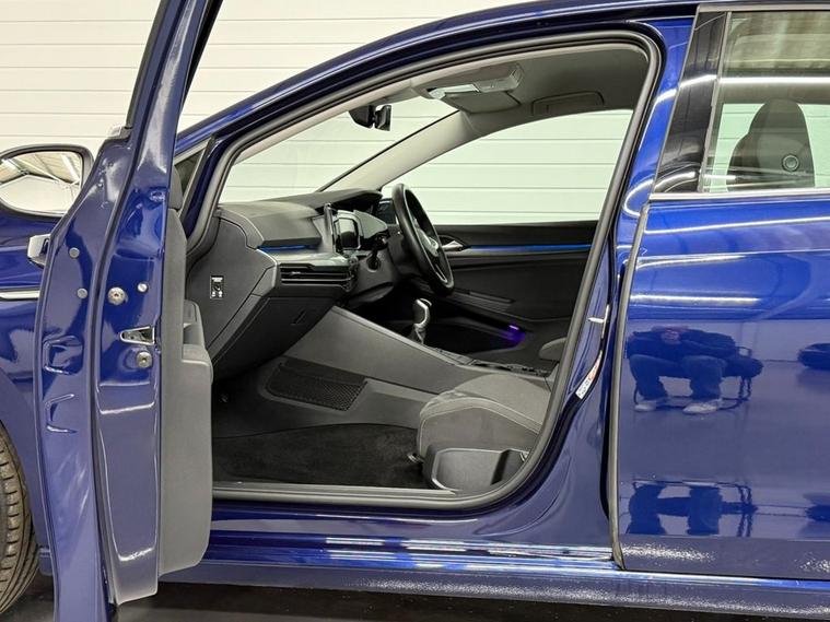 Finished in Atlantic Blue with Soul art velour interior. Features include 17 Belmont silver alloy wheels, Winter Pack, Apple Car Play, Digital Cockpit Pro, Car2X intelligent vehicle networking, discover navigation infotainment system, voice activation, App-Connect, DAB digital radio, FM / AM, bluetooth telephone connectivity, wireless smartphone charger, front and rear parking sensors, 3 zone electronic climate control, heated front seats, heated steering wheel, LED Plus headlights, high beam assist, dusk sensor, ambient lighting, rain sensor and automatic dimming rear view mirror, automatic coming-leaving home lighting function, adaptive cruise control, lane change assist with rear traffic alert and exit warning, predictive pedestrian protection, front door puddle lights, electrically adjustable and heated door mirrors, keyless start, multifunctional leather trimmed three spoke steering wheel, manual 6 speed transmission plus much more standard specification. This VW Golf is offered in excellent condition having covered only 35045 miles from new by its 2 former keepers. The car comes complete with a service history consisting of the following 26/04/2024 at 18975 miles. PLEASE CALL OR E-MAIL FOR FURTHER DETAILS OR TO ARRANGE A PERSONALISED VIDEO OR VIEWING.
