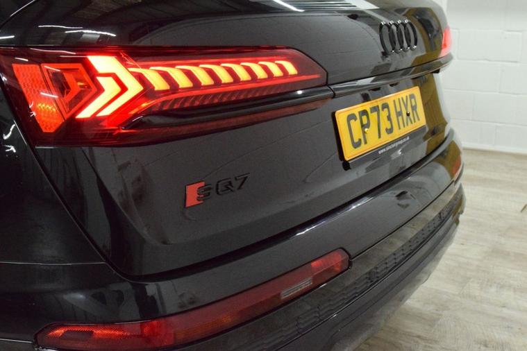 Truly Remarkable Low Mileage SQ7 Presented In Most Stunning Mythos Black Metallic With Black Leather Interior. Comes With Full Audi Documented Service History As Follows 8.10.24 10, 072miles Oil Change Service, 16.7.25 19, 246miles Inspection Service With Brake Fluid Change and Oil Service. Still Under Audi Manufacturers Warranty Till December 2026. This SQ7 Comes With Great Spec With Upgraded Factory Options That Include Dynamic Pack, Technology Pack Pro, Red Painted Brake Calipers With S Logo, Panoramic Glass Sunroof, Park Assist Pack With Remote Park Assist Plus. Also Includes Bang and Olufsen Sound Premium Sound System, Head Up Display, All Wheel Steering, 360 Degree Camera, Wireless Phone Charging With Wireless Apple Car Play Google Android Auto and 22 Inch Wheels.