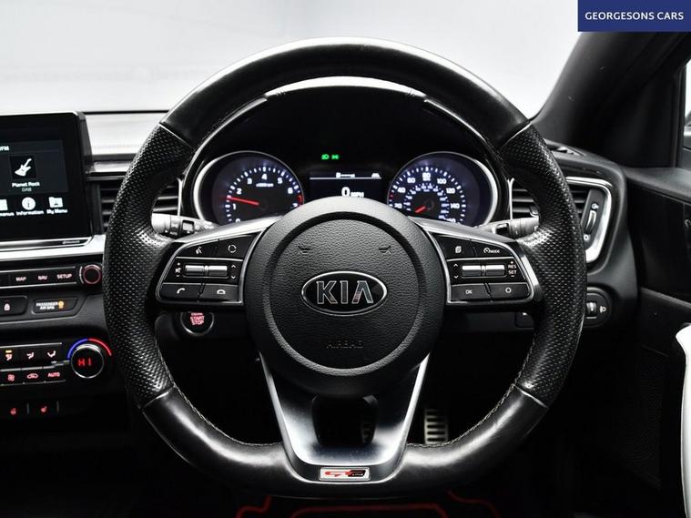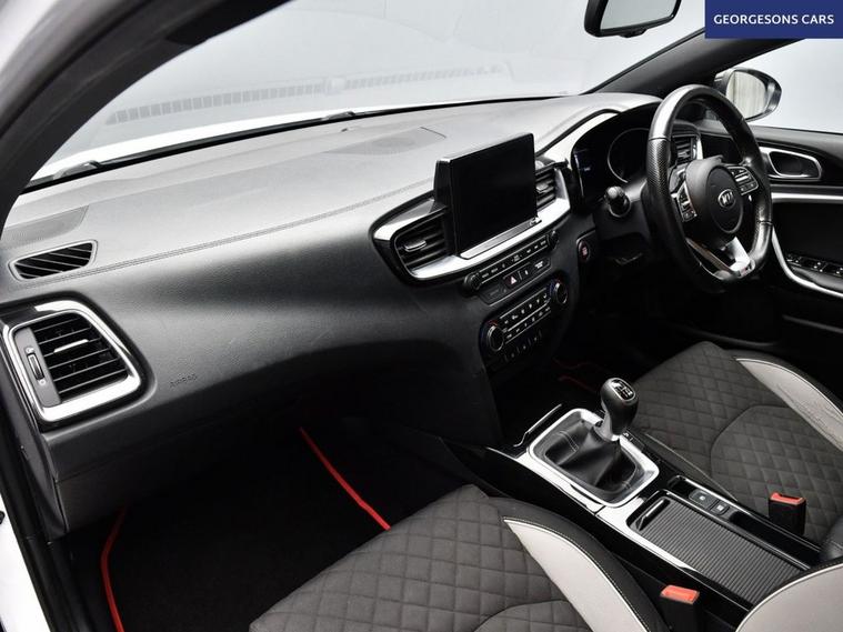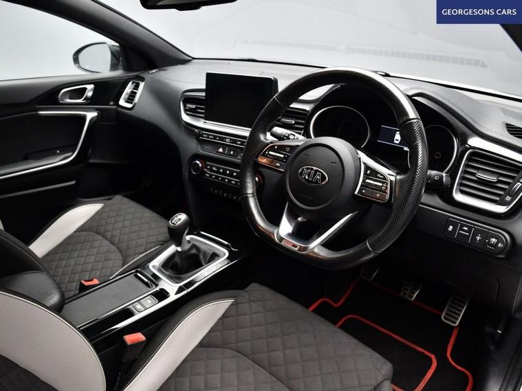 The Kia ProCeed 1.4 T-GDi GT-Line Shooting Brake combines a responsive 1.4-litre turbo petrol engine with 140hp, delivering 0-62mph in 9.3 seconds and up to 47.1mpg in this front-wheel-drive setup with a precise 6-speed manual transmission. The GT-Line trim brings bold sporty styling with 17-inch alloys, lowered suspension and a premium interior. With four services, this ProCeed is in excellent condition. Stay connected with Apple CarPlay, Bluetooth and DAB radio. Parking is easy with reverse camera and parking sensors. Stay comfortable with dual-zone climate control, air conditioning, heated front seats and heated steering wheel. Cruise control with speed limiter and lane assist make every journey relaxed and safe. The stylish five-door Shooting Brake includes a generous 594-litre boot