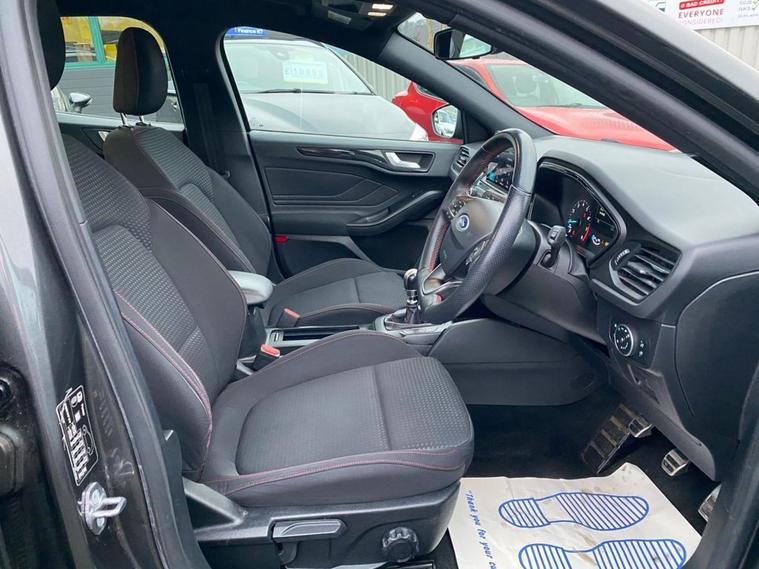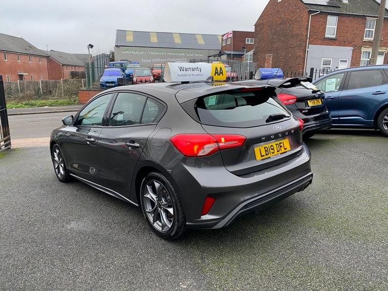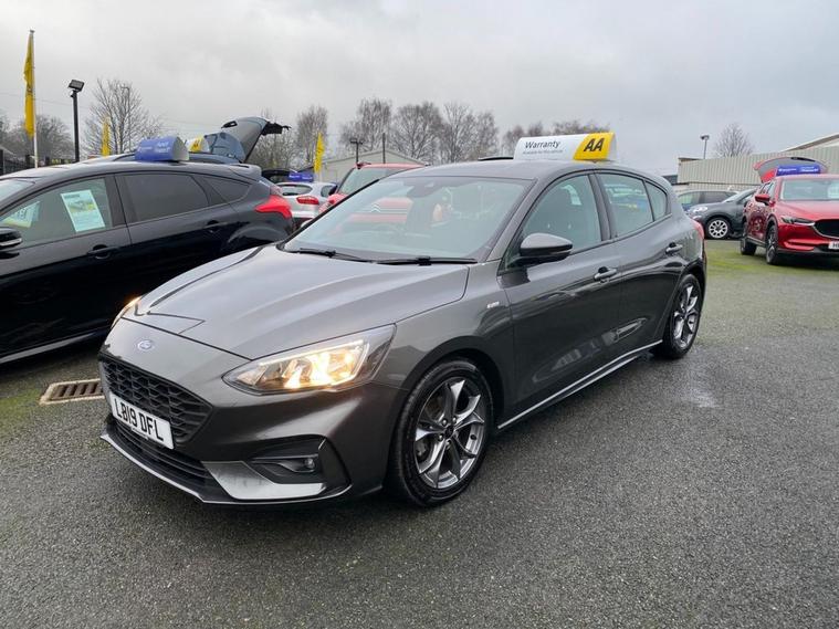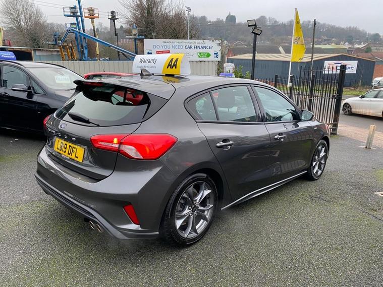 This 2019 Ford Focus ST Line presents an exceptional opportunity with its remarkably low mileage of just 39, 000 miles. This 1.0 litre petrol model, finished in the sporty ST Line trim, is a Euro 6 compliant vehicle, indicating its adherence to modern emissions standards. Inside, youll find the convenience of manual air conditioning and the advanced Ford SYNC system, complete with an 8 inch TFT touchscreen that seamlessly integrates with both Android Auto and Apple CarPlay, keeping you connected and entertained on every journey. Automatic on-off headlights add to the ease of driving, ensuring you always have optimal visibility. The Ford Focus ST Line offers a compelling blend of performance and efficiency. Its 1.0 litre engine delivers a brisk 0-60mph acceleration in 10.0 seconds, demonstrating its responsive nature. Furthermore, its low CO2 emissions highlight its economical and environmentally conscious design, making it a sensible choice for todays driver. These factors combined suggest that this particular Focus ST Line offers a superior driving experience and ownership proposition compared to many other vehicles in its class.