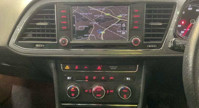 Here we have a Seat Leon 1.4 Eco TSI 150 FR Hatchback in White with good spec including , Sat Nav , Parking Sensors , Climate Control , Half Leather , Power Folding Mirrors , Privacy Glass , 17 Alloy Wheels , with only 2 former keepers