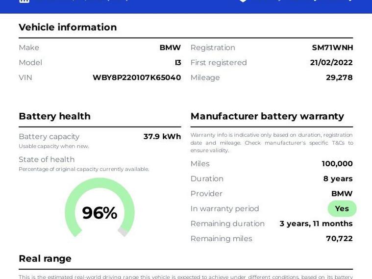 GRADE A BATTERY HEALTH BUY WITH CONFIDENCE FROM THE OFFICIAL WINNER OF 2023 UK INDEPENDENT DEALER OF THE YEAR FASTEST GROWING DEALER - MOTOR TRADE DEALER AWARDS Nuneaton Car Sales are delighted to have for sale this stunning I3 BMW at our showroom. This example benefits from 19 inch alloy wheels, rear parking sensors, LED lighting, keyless ignition, ISOFIX rear seat mountings, electric power fold mirrors, multiple driver modes, heated front seats, air conditioning, cruise control, a digital infotainment system with, Sat Nav, Bluetooth, voice control and USB connectivity! This vehicle was last serviced at BMW on 19/02/2024 @ 15725 miles. The team at Nuneaton Car Sales will carry out an additional service and a comprehensive inspection prior to the sale of the vehicle. Please note our prices are NOT subject to an ADMIN FEE unlike many car dealers that can be as high as £490. Personalised videos available from our multi-award-winning team. CLICK AND COLLECT & HOME DELIVERY AVAILABLE - PLEASE VISIT OUR WEBSITE TO RESERVE A VEHICLE AND WE WILL BE IN TOUCH TO DISCUSS THE PROCESS FOR PART EXCHANGE VALUATIONS PLEASE VISIT OUR WEBSITE AND TO VIEW OUR STOCK OF OVER 300 CARS! Here at Nuneaton Car Sales, we have a vast stock of used cars on sale at our Car Supermarket site in the heart of the Midlands with easy transport links to Nuneaton Train Station. Finance can be arranged and part exchanges are welcome. Most vehicles have additional pictures on our website dealer's website Our showroom in Nuneaton is open 7 days a week, finance can usually be arranged within an hour. Our vehicles are price checked daily nationwide. Nuneaton Car Sales is an AA accredited dealer giving you extra peace of mind. We have over 300 vehicles in stock, some of our vehicles are stored at our storage facility half a mile away. Please call in advance so we can ensure the vehicle is on site and ready for you to view and drive. Every effort is made to ensure all information is correct, however specification data is populated automatically via a third-party source. Nuneaton Car Sales accepts no responsibility for any errors in this data. If there is a particular vehicle feature that will affect your choice to purchase, please contact our sales team, who will be more than happy to confirm this for you.