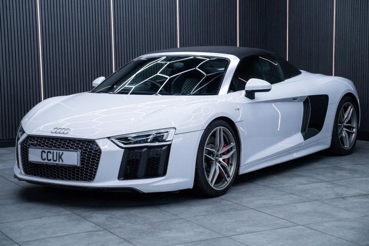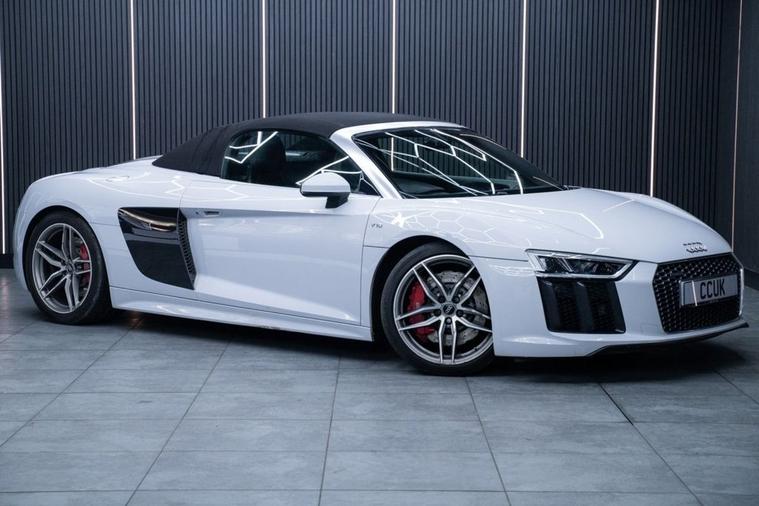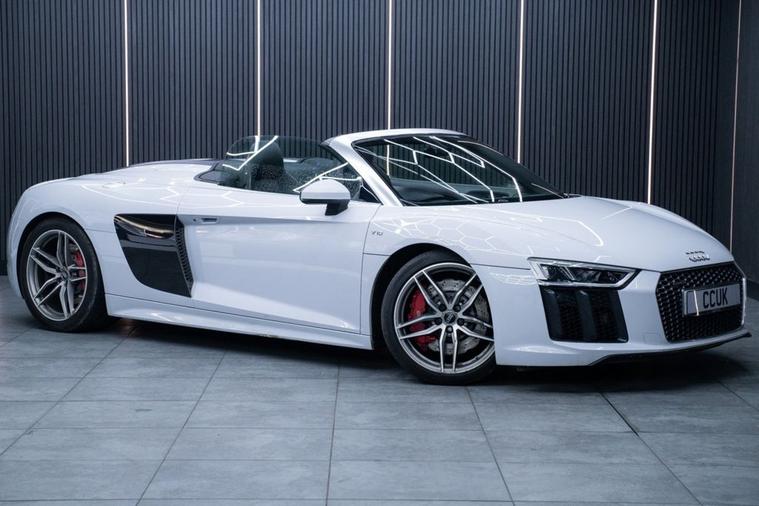 Audi R8 5.2 FSI V10 Spyder quattro 540 PS | HUGE SPEC £84, 990 17, 211 miles | 2017 (GM67 KNR) This is a truly outstanding example of the iconic Audi R8 V10 Spyder, combining supercar performance with everyday usability. Powered by the legendary 5.2-litre naturally aspirated V10 producing 540 PS, paired with the lightning-fast S Tronic gearbox and quattro all-wheel drive, this R8 delivers an unforgettable driving experience. With over £17, 000 in factory-fitted options, this car boasts an exceptionally high specification, making it one of the most desirable R8 Spyders on the market. Key Features & Highlights: # 5.2 FSI V10 540 PS # quattro All-Wheel Drive # S Tronic Automatic Transmission # Over £17, 000 in Optional Extras # Sound & Comfort Pack # Sport Plus Pack # Audi Virtual Cockpit # Bang & Olufsen Premium Sound System # Satellite Navigation # Reverse Camera # Switchable Sports Exhaust # Euro 6 / Start-Stop (s/s) The Spyder roof transforms this R8 into the ultimate open-top supercar, delivering an intoxicating V10 soundtrack and head-turning presence wherever it goes. Performance, luxury, and theatre in equal measure. A stunning, low-mileage R8 Spyder with a huge specification not to be missed. Contact us today to arrange a viewing or test drive Part exchange welcome | Finance available | Nationwide delivery available
