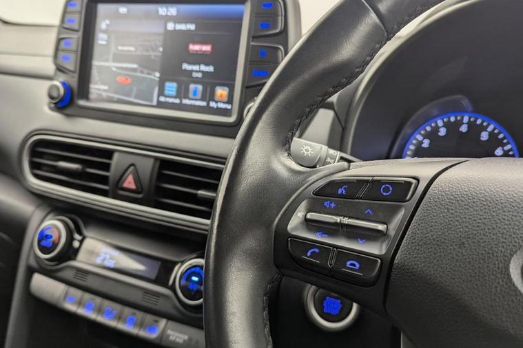 Henson Car Store presents the HYUNDAI KONA 1.0 T-GDi Premium SUV 5dr Petrol Manual Euro 6 (s/s) finished in Black. this car comes with service history. This 2019 Hyundai KONA T GDi Premium is a well maintained example, offering a blend of style and practicality. Powered by a 1.0 litre petrol engine and meeting Euro 6 emissions standards, this model comes with a Premium trim level. Youll appreciate the convenience of rear parking sensors with parking assistance, alongside a smart key system that allows for keyless entry and engine start stop. Comfort is assured with climate control air conditioning, and the automatic headlights with a dusk sensor provide added ease. For seamless connectivity, it includes Apple CarPlay. This Hyundai KONA stands out with its favourable attributes. Its fuel economy of 44 miles per gallon indicates it is more economical than many similar vehicles. Furthermore, its low CO2 emissions and low insurance group highlight its cost effectiveness for everyday driving, making it a sensible choice for many owners.