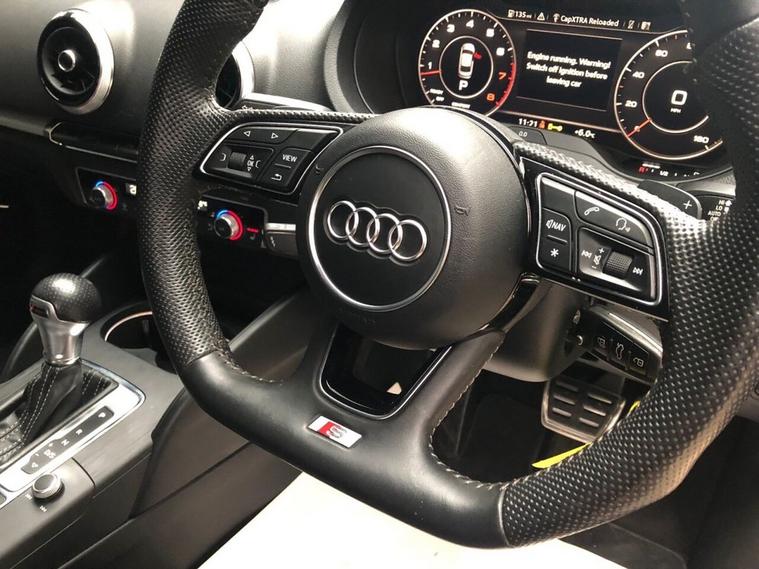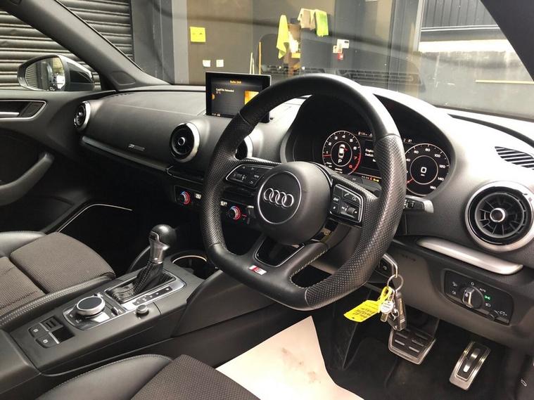 This Audi A3 TFSI Black Edition from 2019 boasts a full dealership service history and has had only one owner, offering excellent provenance. This Euro 6 compliant model features a 1.5 litre petrol engine and is presented in the desirable Black Edition trim. Notable features include the Technology Package with Bluetooth and wireless phone charging, and the Comfort and Sound Package which adds a luxury branded sound system, heated seats, and parking assistance sensors for both the front and rear. The vehicle also benefits from heated, electrically adjustable, folding, and auto dimming door mirrors, along with LED headlights and dynamic rear indicators, all managed by a light and rain sensor for automatic headlight activation. A clear vehicle history check provides further peace of mind, and the car comes with a three month warranty. The Audi A3 TFSI Black Edition offers impressive efficiency, achieving a highlight fuel economy of 44 miles per gallon, which indicates it is more economical than many similar vehicles. Its low CO2 emissions further highlight its environmental consideration. This combination of strong performance, advanced technology, and excellent efficiency makes this A3 a compelling choice for those seeking a premium compact car.