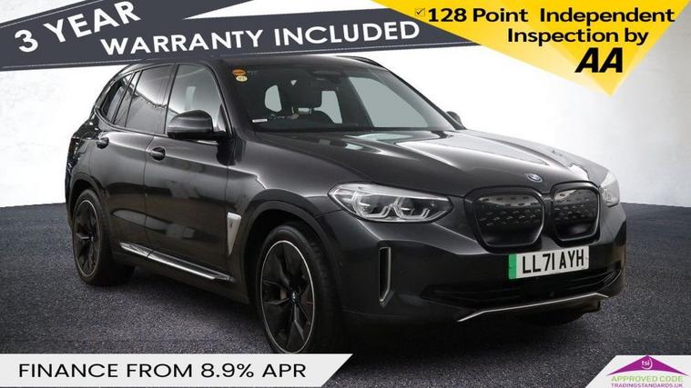 This 2021 BMW iX3 Premier Edition Pro has had only one owner and boasts a clear vehicle history check, ensuring peace of mind. As an electric vehicle, it offers a substantial battery capacity of 80 kWh, providing a maximum range of 279 miles when new. Charging at home with a 7kW charger takes approximately 11 hours and 20 minutes for a full charge, while rapid public charging can take you from empty to 80% in just 32 minutes. This Premier Edition Pro model comes equipped with a host of desirable features, including a towbar, a panoramic glass sunroof, Parking Assistant Plus with a 360 degree camera, a premium Harman Kardon loudspeaker system, and enhanced Bluetooth with wireless phone charging. The BMW iX3 Premier Edition Pro stands out with its impressive performance, accelerating from 0 to 60mph in a swift 6.8 seconds, demonstrating its dynamic capability. Its large boot space offers excellent practicality for everyday use and longer journeys. These highlights indicate that this iX3 offers a superior driving and ownership experience compared to other vehicles in its class, combining advanced electric technology with premium comfort and convenience.