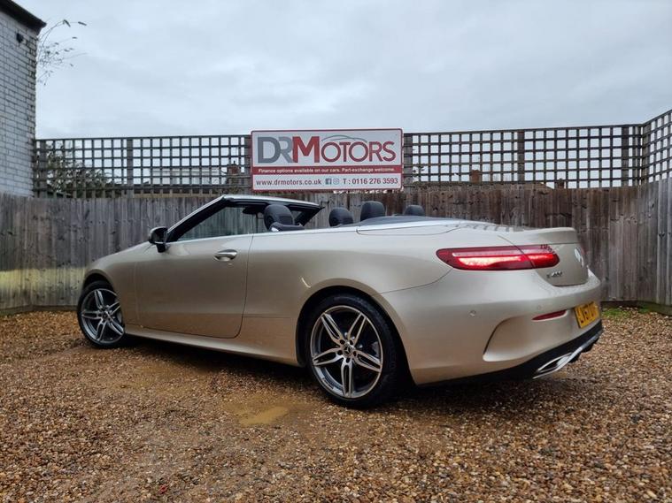 Mercedes-Benz E-Class 3.0 E400 V6 AMG Line (Premium) Cabriolet Automatic NEW YEAR SPECIAL OFFER 2 YEARS NATIONWIDE GOLD WARRANTY INCLUDED IN THE PRICE This stunning Mercedes-Benz E400 AMG Line Premium Cabriolet is presented in excellent condition both inside and out and is sure to impress. With just one former keeper from new, a full Mercedes main dealer service history consisting of eight services, and a high-quality specification, this convertible offers luxury, performance, and outstanding value for money. First to see will buy. The car is ULEZ compliant and features a smooth automatic gearbox, making it perfect for both city and motorway driving. It comes with satellite navigation, rear parking camera, front and rear parking sensors, Bluetooth handsfree, cruise control, DAB radio, USB and AUX connectivity. Comfort is enhanced with heated half-leather Alcantara seats, memory seating, and Mercedes Air scarf neck heating, allowing for enjoyable open-top driving all year round. The vehicle sits on stylish 19-inch alloy wheels and benefits from a lovely colour combination that truly complements its AMG Line styling. This Mercedes comes with two keys, is very fuel efficient for its class, and is supplied with an MOT valid until January 2027. It is in lovely condition throughout and represents excellent value for money. As part of our New Year special offer, this vehicle includes a 2-year nationwide Gold Warranty for added peace of mind. Every vehicle sold also includes 12 months free AA breakdown cover and is fully Experian HPI clear. Warranty upgrades are available if required, with one-year Gold Warranty available for £399 or two-year Gold Warranty for £599. We currently have over 150 DR Approved Used Cars on site and are proud winners of the CarGurus Top Rated Dealer Award for 2020, 2021, and 2022. DR Motors is both a Trading Standards Approved Garage and an AA Approved Dealer, highlighting our commitment to quality and customer satisfaction. Finance options are available, part exchange is welcome, and debit cards are accepted. A deposit can be taken to secure this vehicle. Please note that every vehicle has an additional administration charge of £149 in addition to the advertised price. Viewing is strictly by appointment only. For further information or to arrange a viewing, please contact our Sales Manager Jason on 01163432804. You can call any time, day or night. Visit our website at dealer's website to explore finance options and view our full stock. Every effort has been made to ensure the accuracy of this information; however, errors may occur. Please speak with a member of our sales team to confirm any details that may affect your purchasing decision.