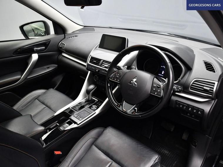 The Mitsubishi Eclipse Cross 1.5T 4 combines a responsive 1.5-litre turbo petrol engine with 163hp, delivering 0-62mph in 9.3 seconds and up to 40.4mpg in this all-wheel-drive 4WD setup with a smooth CVT automatic transmission. The top-spec 4 trim brings premium features with a high-grade interior. With eight services, this Eclipse Cross is in excellent condition. Enjoy the expansive panoramic glass roof for an airy cabin feel, while Apple CarPlay, Bluetooth and DAB radio keep you connected. Parking is effortless with 360-degree camera, reverse camera and parking sensors. Stay comfortable with climate control and electric heated front seats. Adaptive cruise control, lane assist and head-up display enhance safety and relaxation on every journey. The spacious five-door SUV includes a 437-litre boot for practicality.