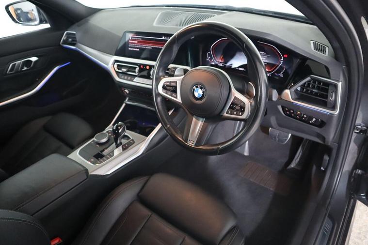 This 2022 BMW 3 Series 320i M Sport is a superb example, having been owned by only one careful owner. This Euro 6 compliant model boasts a responsive 2.0 litre petrol engine, delivering an impressive 0-62mph in just 7.1 seconds. The M Sport trim enhances its sporty appeal, further complemented by the M Sport Pro Package and striking M Sport Brakes with distinctive blue calipers. Experience cutting edge technology with the BMW Live Cockpit Professional, which includes seamless Bluetooth connectivity. The Adaptive LED headlights, a part of the advanced lighting system, automatically adjust to your driving conditions, while the rain sensor ensures the headlights activate precisely when needed. These features collectively demonstrate how this 3 Series offers a superior driving experience compared to other vehicles in its class.