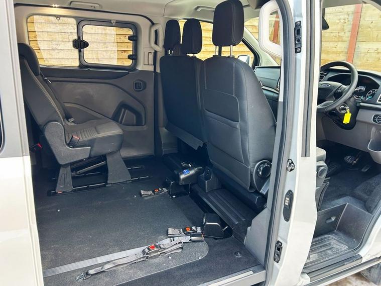 This GM Coachworks converted Ford Transit Custom Wheelchair Accessible Vehicle (WAV) has 4 Seats (3 Front and 1 Rear). Equipment includes Wheelchair Ramp, Electric Winch, Air Conditioning, Electric Front Windows, Electric Adjustable Wing Mirrors, Power Steering, Remote Central Locking, Tinted Rear Windows.