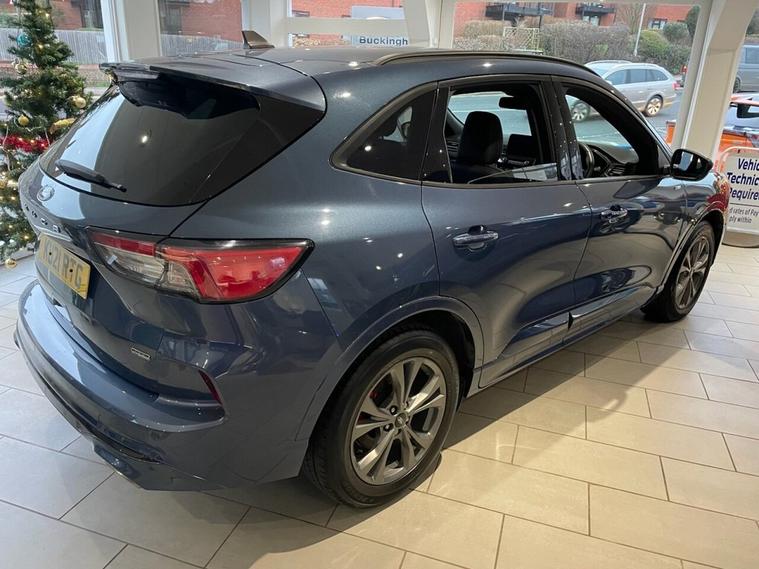 This striking 2021 Ford Kuga ST-Line in Chrome Blue combines sporty styling, advanced technology, and practical SUV versatility. With just 35, 000 miles, its in excellent condition, offering peace of mind and a like-new driving experience. The ST-Line trim gives the Kuga a sleek, athletic look, featuring distinctive styling elements, bold alloy wheels, and sporty interior touches. Inside, the cabin is spacious and modern, with a comfortable layout designed for both driver and passengers. The rear seats fold easily, providing a flexible boot space for everyday use, shopping, or weekend adventures. This Kuga is packed with features for comfort, convenience, and connectivity, including dual-zone climate control, heated seats, electrically adjustable drivers seat, keyless start, Bluetooth connectivity, DAB radio, Apple CarPlay and Android Auto, and a multifunction steering wheel. Cruise control and parking sensors make driving effortless, while the elevated driving position gives excellent road visibility. On the road, the Kuga ST-Line is smooth, responsive, and fun to drive. Its efficient engine ensures good fuel economy, while the refined suspension balances comfort with confident handling. Whether navigating city streets or cruising on the motorway, it delivers a relaxed and enjoyable experience. Safety is a priority, with features including multiple airbags, ABS, traction control, stability control, lane-keeping assist, tyre pressure monitoring, and ISOFIX mounting points, giving reassurance for every journey. Overall, this 2021 Ford Kuga ST-Line offers low mileage, sporty styling, and practical SUV versatility in a modern and well-equipped package. Its ready to provide comfort, performance, and style for its next owner.
