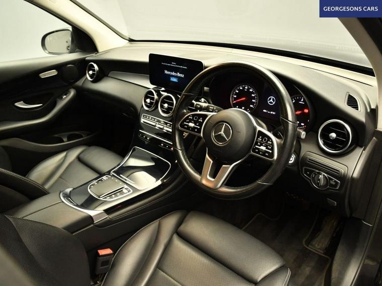 The Mercedes-Benz GLC 220d Sport combines a refined 2.0-litre turbo diesel engine with 194hp, delivering 0-62mph in 7.6 seconds and up to 52.3mpg in this all-wheel-drive 4MATIC setup with a smooth 9-speed G-Tronic+ automatic transmission. The Sport trim offers premium style with 18-inch alloys and a high-grade interior. With one owner and six services, this GLC is in excellent condition. Navigate effortlessly with Apple CarPlay, Bluetooth, DAB radio and satellite navigation. Parking is a breeze thanks to the reverse camera. Stay comfortable with climate control and air conditioning, plus electric heated front seats. Paddle-shift gears, cruise control and lane assist deliver relaxed, safe driving every day. The spacious five-door SUV includes a 550-litre boot for practicality.