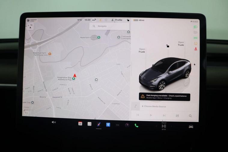 This 2023 Tesla Model Y presents an exceptional ownership opportunity, having had only one owner since new and boasting remarkably low mileage for its age. As a fully electric vehicle, it offers a substantial battery maximum range of 283 miles when new, ensuring you can travel further on a single charge. This Model Y is equipped with a host of convenient features designed to enhance your driving experience, including dual zone climate control for personalised comfort, a heated steering wheel for those colder mornings, and wireless phone charging to keep your devices powered up. Navigating and parking are made effortless with the 15 inch touchscreen featuring onboard maps and navigation, complemented by a 360 degree camera system. You can also enjoy your favourite music and media through seamless Bluetooth connectivity. The performance of this Tesla Model Y is truly impressive, with an acceleration of 0 to 60 miles per hour in just 6.6 seconds, demonstrating its dynamic capabilities. Furthermore, the generous boot space provides ample room for all your luggage and shopping needs, making it a practical choice for families and individuals alike. These highlights, combined with its electric powertrain and advanced technology, position this Model Y as a superior option compared to other vehicles in its class, offering efficiency, performance, and cutting edge features.