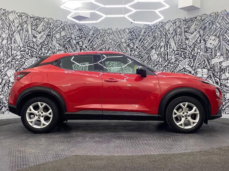 This 2020 Nissan Juke DIG-T Acenta is presented with a clear vehicle history check, offering you peace of mind. This stylish hatchback features a 1.0 litre petrol engine and meets Euro 6 emissions standards. Inside, youll find manual air conditioning to keep you comfortable, alongside the convenience of Android Auto and Apple CarPlay for seamless smartphone integration. Parking is made easier with a rear parking camera, and you can enjoy your favourite music or podcasts through the USB AUX socket and Bluetooth connectivity. The Juke is also equipped with LED headlights for improved visibility. The Juke DIG-T Acenta offers an impressive fuel economy of 49 miles per gallon, indicating its efficiency compared to other vehicles in its class. Furthermore, its low CO2 emissions highlight its environmentally conscious design. This combination of practical features, efficient performance, and a clean vehicle history makes this Nissan Juke a compelling choice.
